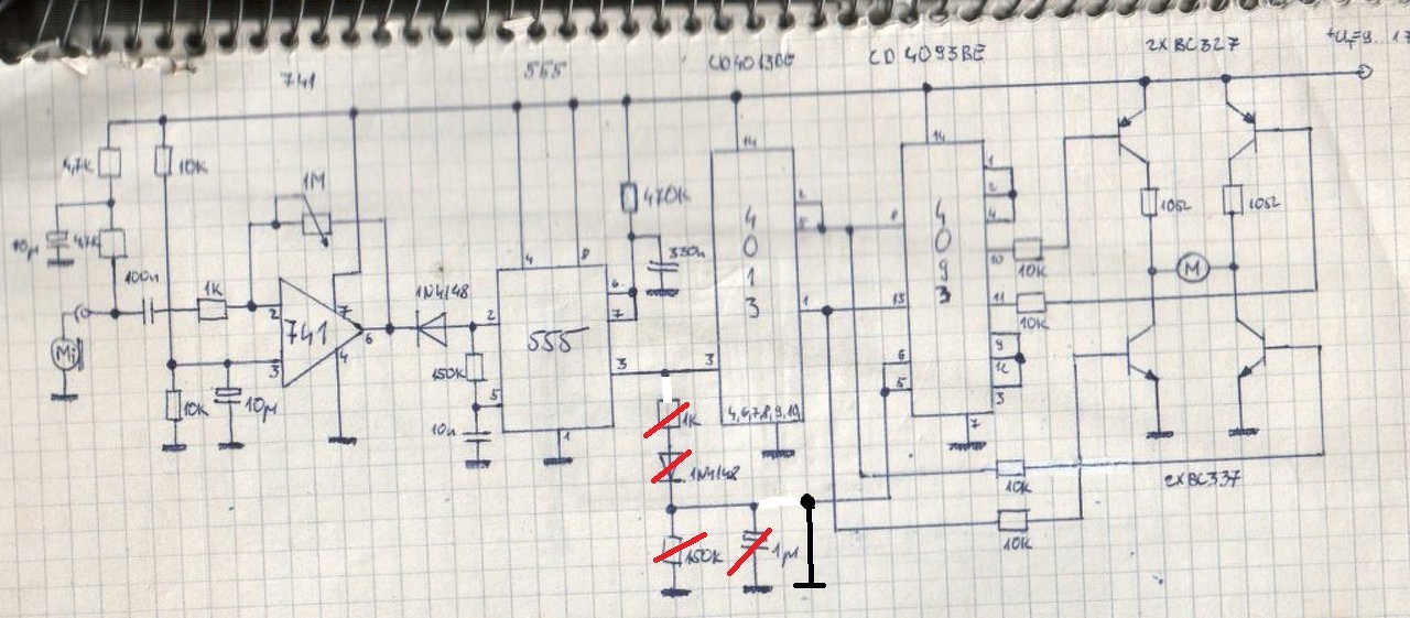 - plusz motoros rész ami nem működik megfelelően. - A diódás rész a 741-en, amit kera_will ajánlott, de az még érzéketlenebbé tette a hangra indulást. Tehát amit el szeretnék érni ha lehet: - Érzékenyebbé szeretném tenni a hang bemenetet. - Esetleg egy állandó forgás melletti forgásirányváltást, nem ahogy most működik, áll, és ha hangjelet kap akkor indul be és vált. A hozzászólás módosítva: Ápr 23, 2017