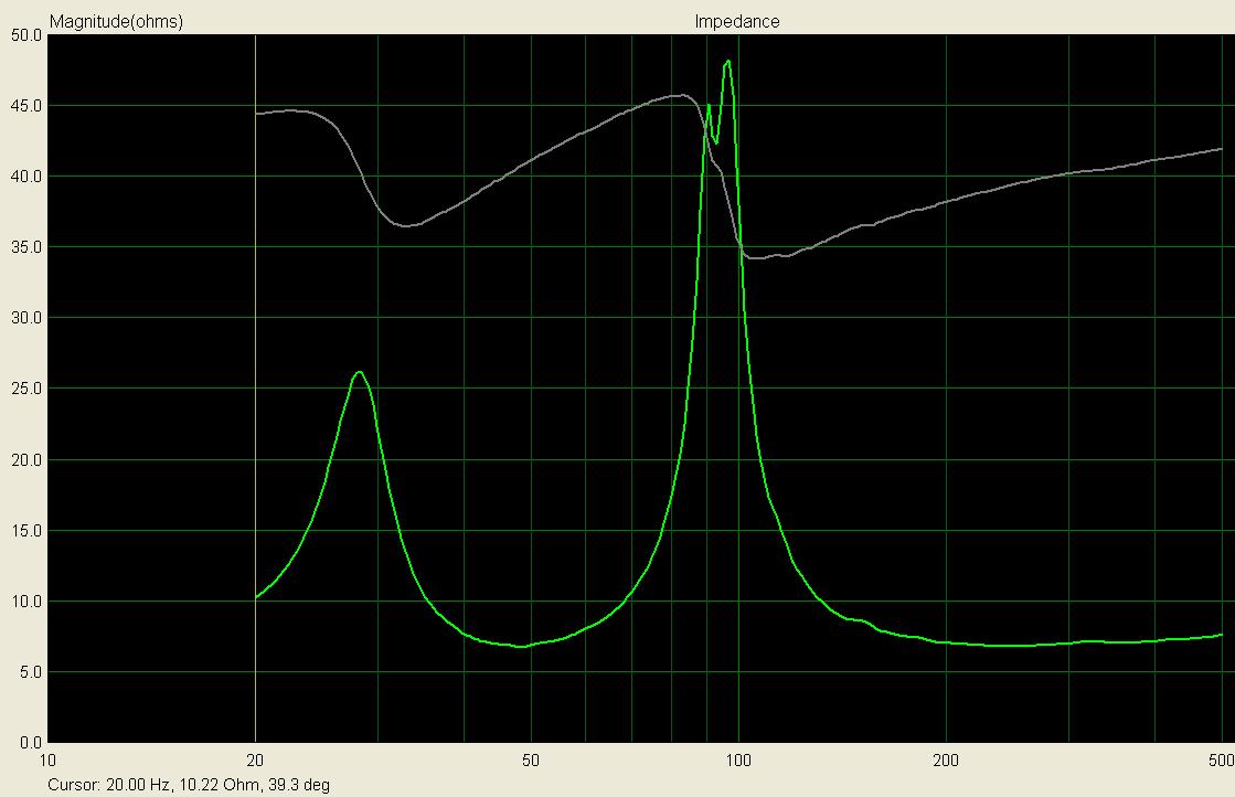 Kéne egy kis segítség. Méregettem a hangolást, és a mellékelt képeken látható (csúnya) eredményeket kaptam. Egy D=76mm, L=115mm reflexcsővel, illetve nélküle mértem. Csillapítás nincs a dobozban.
