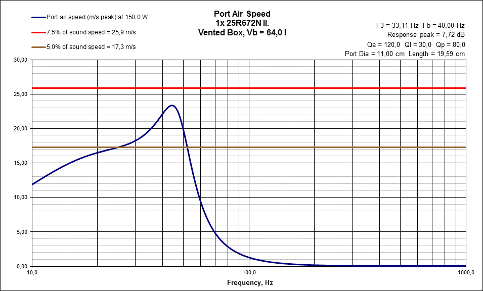 A gyári szubok sem nagyon mennek F3 35 Hz alá. Inkább ajánlok 40 Hz-es hangolást a 110-es csővel és így 1db 20 cm hosszú cső kell. F3= 33 Hz és még kezelhető marad a kónusz kitérése 150 W ig. Amúgy a 86 dB-es érzékenység mellé kell is majd a kakaó rendesen.