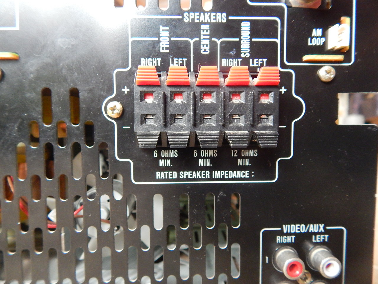 A Sorroundhoz 12 Ohm-ot kér az erősítő, ezek meg 4 Ohmosak. Innentől kezdve egyértelmű hogy oda nem alkalmas. Hogy mekkora terhelhetőséget írtak rá, az meg nagyon nem számít, a sorround kimeneten jó ha 5-10 W kijön a 12 Ohmra. Az a Pioneer folyamatosban 20-at bír elvileg, de az állapotából kiindulva semmiképp nem tenném be. Hacsak ki nem próbálod azt, hogy sorba kötsz velük 6 -8 Ohm körüli 5W-os ellenállást. Ezek a régi hangszórók még lehet hogy vannak olyan érzékenyek, hogy az így rá jutó 1/3 teljesítmény is elegendő háttér sugárzónak. Amiket ott az első képen ír hogy 300W PMPO meg meg ne tévesszen, nyugodtan eloszthatsz minden értéket 10-zel.