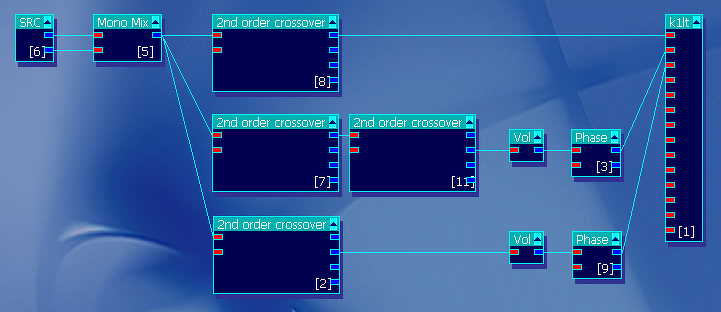 A csatolt képen látható konfigurációban be tudja állítani az alul- és a felüláteresztő szűrő, illetve a sávszűrő vágási frekvenciáit, a közép és magas csatorna csillapítását, és ezeken a fázisfordítást. Természetesen szükség van egy legalább háromcsatornás erősítőre is (vagy hatcsatornásra, ha két hangsugárzót szeretne összehasonlítani). Azután már csak fül, idő és türelem kell. Amikor sikerült összelőnie egy neki tetsző hangképet, a program adatai alapján - még mindig mérések hiányában - talán tudtok javasolni egy konkrét hangváltó-kapcsolást, amit megépít. És ami teljesen másképp fog szólni, mint amit a hangkártyával előtte hallott, de legalább könnyebben segíthettek a hangolásban, mert csupán az ideális tervet kell a valósághoz közelíteni.