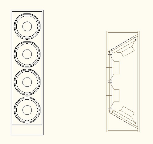 Szeretnék egy mélyládát építeni, amibe 4db 30cm-es hangszóró van. Zárt láda lenne. A problémám annyi, hogyha a 4 hangszóró egymás felett helyezkedik el, az túl magas dobozt eredményez. Most azon gondolkodtam, hogyha beforgatnám az alsó és felső hangszórót 30° szögben, az milyen hatással lenne a végeredményre? Fontos, hogy egy sorban legyen az összes hangszóró? Mellékeltem egy képet, oldalnézetből. Szobába lenne., házimozihoz. Köszönöm! Idézet: „Fontos, hogy egy sorban legyen az összes hangszóró?” Az nem fontos