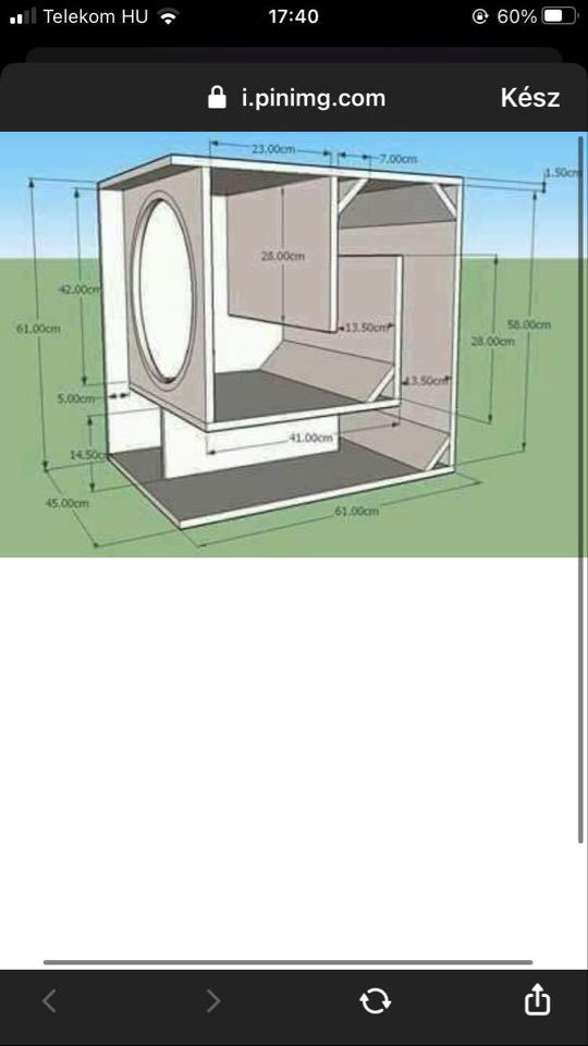 A szakirodalomban van tölcsér, meg van TL, ami lehet egyenes, lehet szűkülő, meg lehet táguló. Gondolom ezek valamelyike lehet a szóban forgó darab is. Egyébként az ilyen apróságokra én kapásból azt mondom, hogy nekiállni sem érdemes. Ilyen 20-25 literes dobozok, a működés módjától függetlenül sem valók semmire, max arra jó hogy rákötsd a lapos TV-t. Nálam a szobában (zárt dobozaim vannak) összességében 360 liter a doboz térfogat, és még ezek sem annyira tetszenek, ha lenne helyem, meg értenék hozzá, akkor biztos hogy építenék helyettük 2db brutális méretű tölcsért. Azokról az kell tudni, hogy magasabbak mint egy ember, meg a szélességük is közelíti a magasságukat. Ja, meg nem kell hozzá 100W mert 10W-tal is szétordítja a helyiséget. |