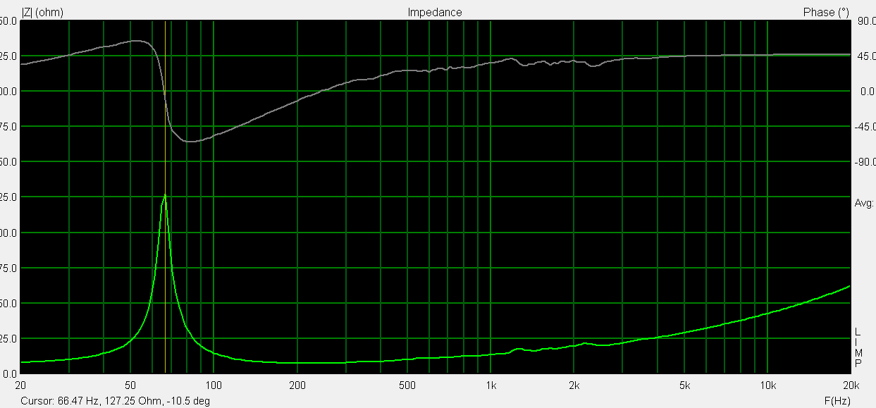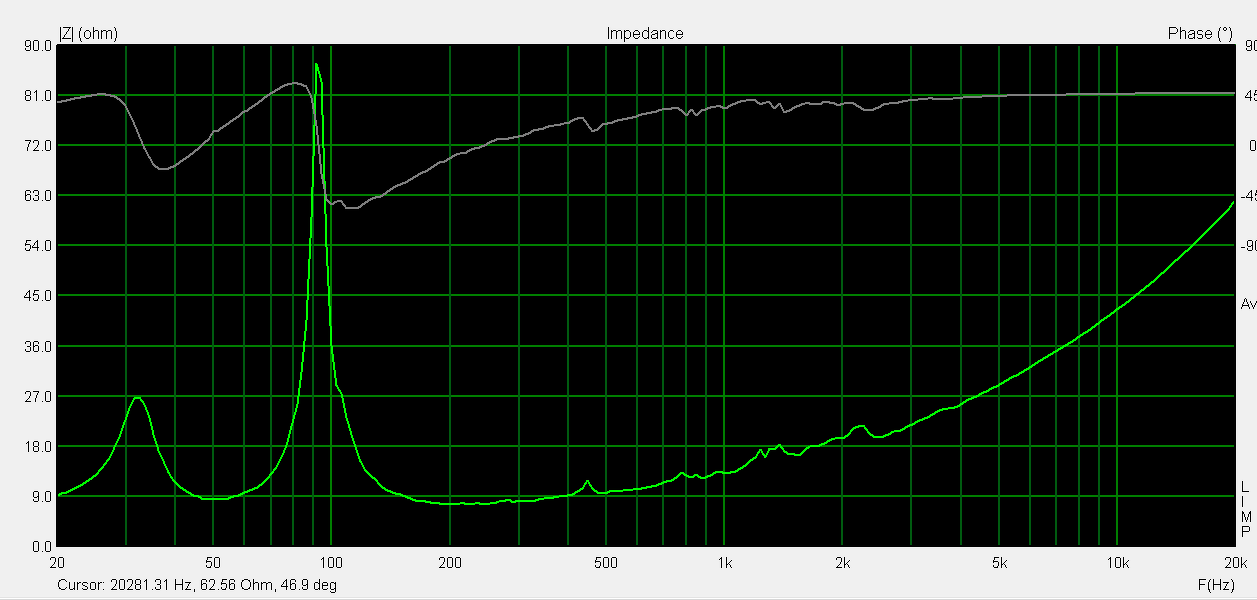 Csináltam 2 impedancia mérést a hangszórómról első az asztalon másik meg a dobozba amibe jelenleg is szól.