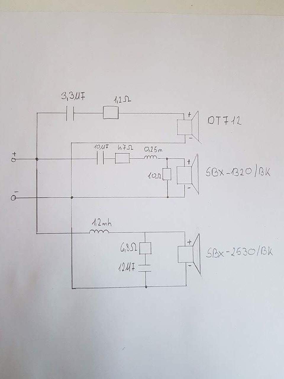 Egy 3utas hangvaltot szeretnek epiteni sal hangszórókkal de olvastam az előző kommentekben hogy a gyári hangváltó nem a legjobb. Találtam egy régebbi rajzolt de ez nem ezekhez a hangszorokhoz keszult. Esetleg milyen atalakitasokkal tudnam hasznalni vagy milyen alternativa johet még szoba. A hangszorok: DTF12, SBX1320, SBX2030(A rajzon 2530 csak eliras).