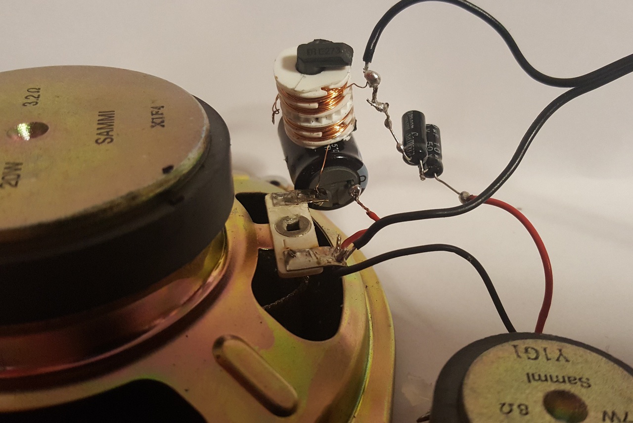 Egy bluetooth hangdobozról lenne szó. 4 ohm 3W hangszóró volt az eredeti. Szétszedtem, és most 1-1db 20w 3,2 ohm, és 7w 8ohm hangszórókat hajt, a 7w-os már le van választva 2db 10mF-os sorba forrasztott kondival csipogónak. Szeretnék viszont a 20w-osra némi mélyet erőltetni. Hangerő van bőven, de én megelégednék a felével, ha szép mély hangzást érnék el. Számítógépen be tudok rá állítani mélyet, amitől erőteljesen, és szépen rezonál, de ha pendrive-ot, vagy microSD-t használok, nincs ilyen lehetőségem "Ami kéznél van" alapon indultam meg, 47mF kondival, és egy tekercsel (nincs róla adatom, nem tudom bemérni), a magasat le is vágja, de mélyebb nem lesz, és a dinamikájából is veszít. Nem tudom, hogy ezek alapján tud e valaki egy ilyen kis teljesítményre valamit javasolni. Megpróbálok egy képet csatolni a kókányolásomról. Igazából így sincs már rossz hangja, de nem bánnám, ha picit jobban ütne Előre is köszönök bármilyen segítséget, ha az annyi is, hogy esélyem sincs jobbra
