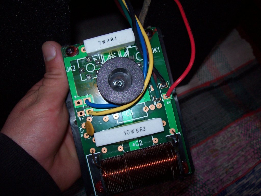 Szia! Mondasz valamit. Az ugrott be, hogy a kondenzátor átengedi a mélyhangokat, esetleg átüt. A közép és magassugárzó együttes és ismétlődő elpusztulása gyári készüléknél inkább a használat során durván eltekert hangszín beállításból származhat. A fotó alapján a váltó korrektnek tűnik.