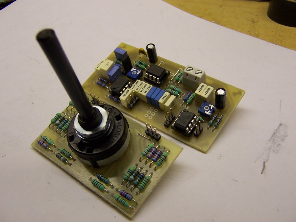 Az 50k -s trimmerrel a szintillesztést lehet belőni. A 100k-s a kimeneti erősítést. A jumperrel fázisforddítást lehet beállítani.