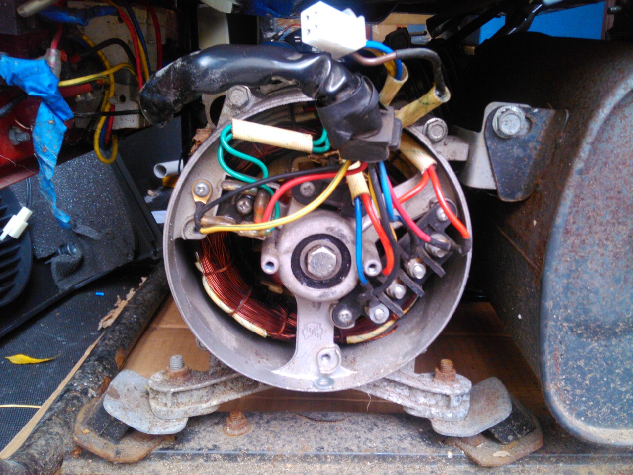 Lefotóztam a két generátort,a régihez képest 2 vezetékkel van több az újon. Az egyik vezeték megy előre a gyujtáskapcsolóba,a másik meg a házra csatlakozik test ként(itt két test kábel van,a régin csak egy). Ha terhelést kap amit nem bír,akkor hátul is leesik 0-ra a feszültség a sorkapcson,a tekercs kivezetésénél. A tekercselésnél az újon,mintha vastagabb huzalból lennének a szálak,de a forgórészen is sokkal minőségibb a kiöntés a régin. A mérésben kérnék egy kis segítséget,hogy hol mérjek,és mit. Köszönöm A hozzászólás módosítva: Okt 19, 2013
