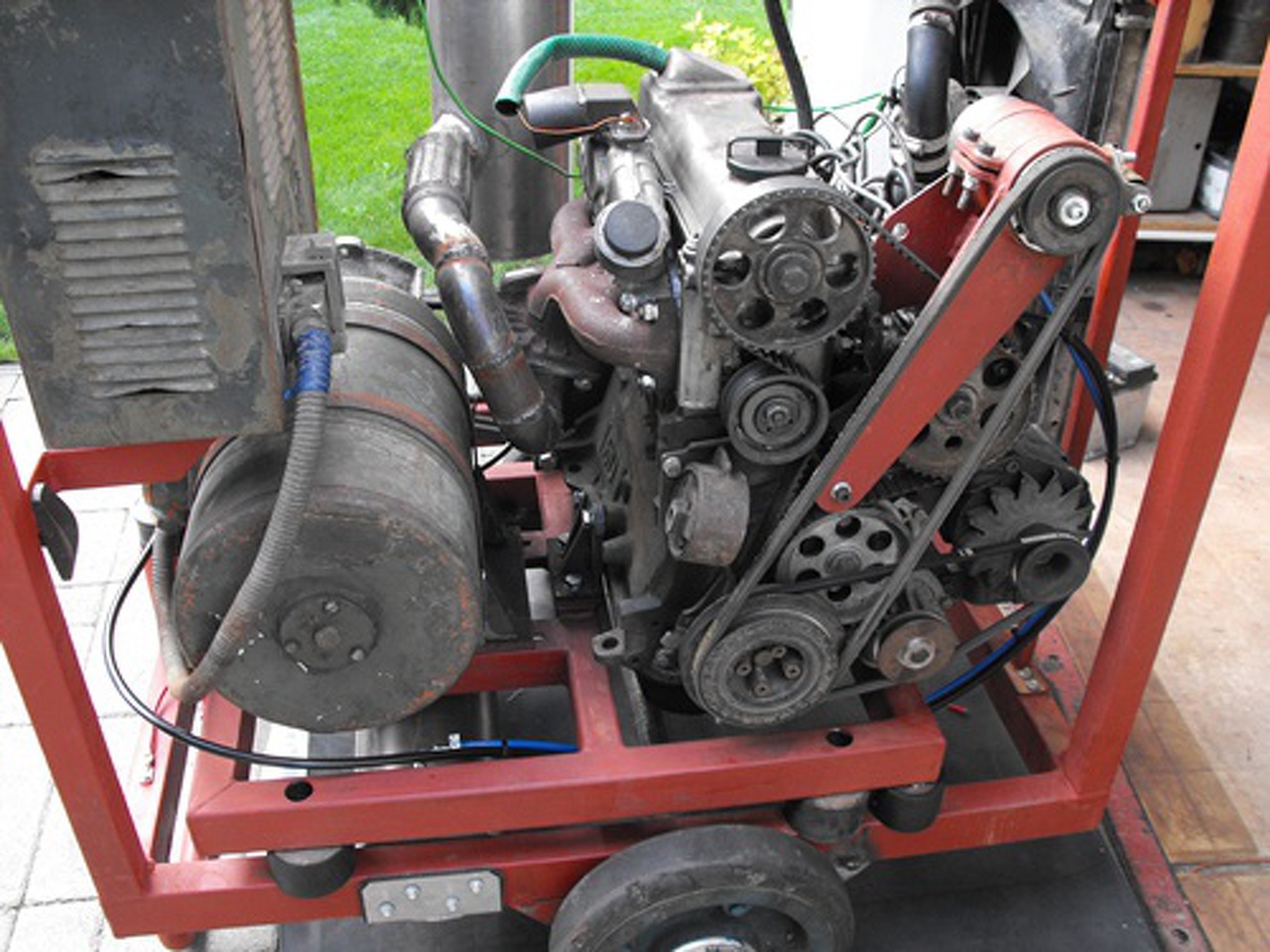 VW 1.6D sima szívódízel. A motor 1650 1/perc, a szinkron generátor 3000 1/perc fordulaton megy.