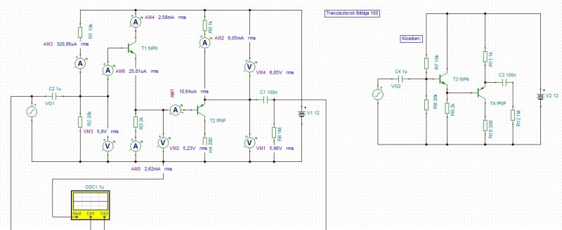 Itt most h paraméterek nincsenek, csak annyit tudunk a tranyókról, hogy 100-as a bétájuk.
