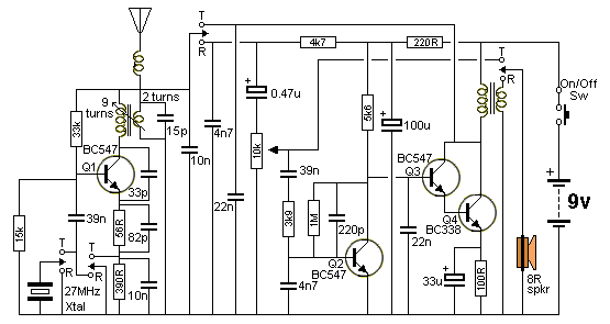 PLL IC volt, egyéb kiegészítőkkel 100kHz-es FM modulált jelet ültetett a hálózatra. HF erősítője hangszóróra dolgozott, és volt egy elektrét betétje. Tápot nyilván a hálózatból kapta, ezt "kerülte meg" megfelelő szigetelőképességgel az FM jel.