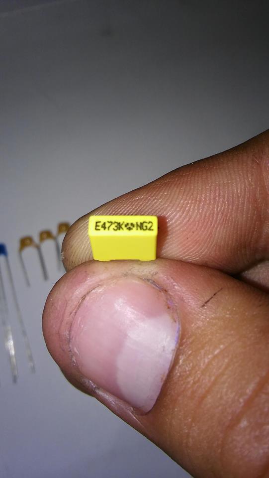 Tehát a képen sárga kondin "473" van, első kettő szám az érték, harrnadik a nullák száma, és annyi pF. A "473" lesz 47 és utána 3 nulla, azaz 47000 pF. Ez ezres váltással 47 nF. Van még "224", itt 22 és 4 nulla, azaz 220000 pF, ami átváltva 220 nF. De ezt a segédprogram megmondja.