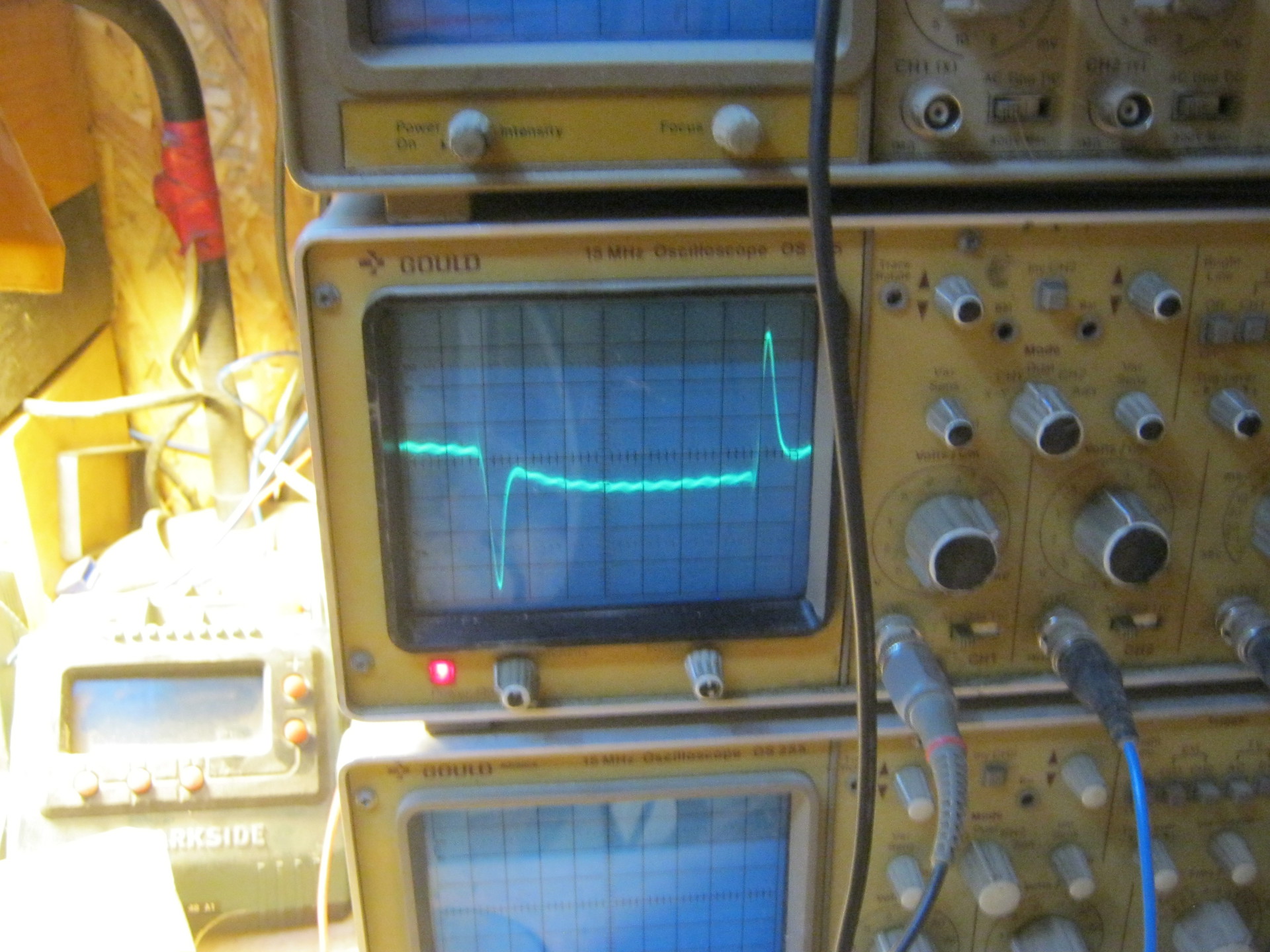 Olyan szépen hullámzik az alapjelem, hogy gyönyörű. nem tudom, hogy mi a prántya okozza. 5208 Hz az alapjel periódusa és ott hullámzik rajta valami, amit nem tudok leszedni róla. Szerintem nem a gépből, mert vándorol az alapjelen.