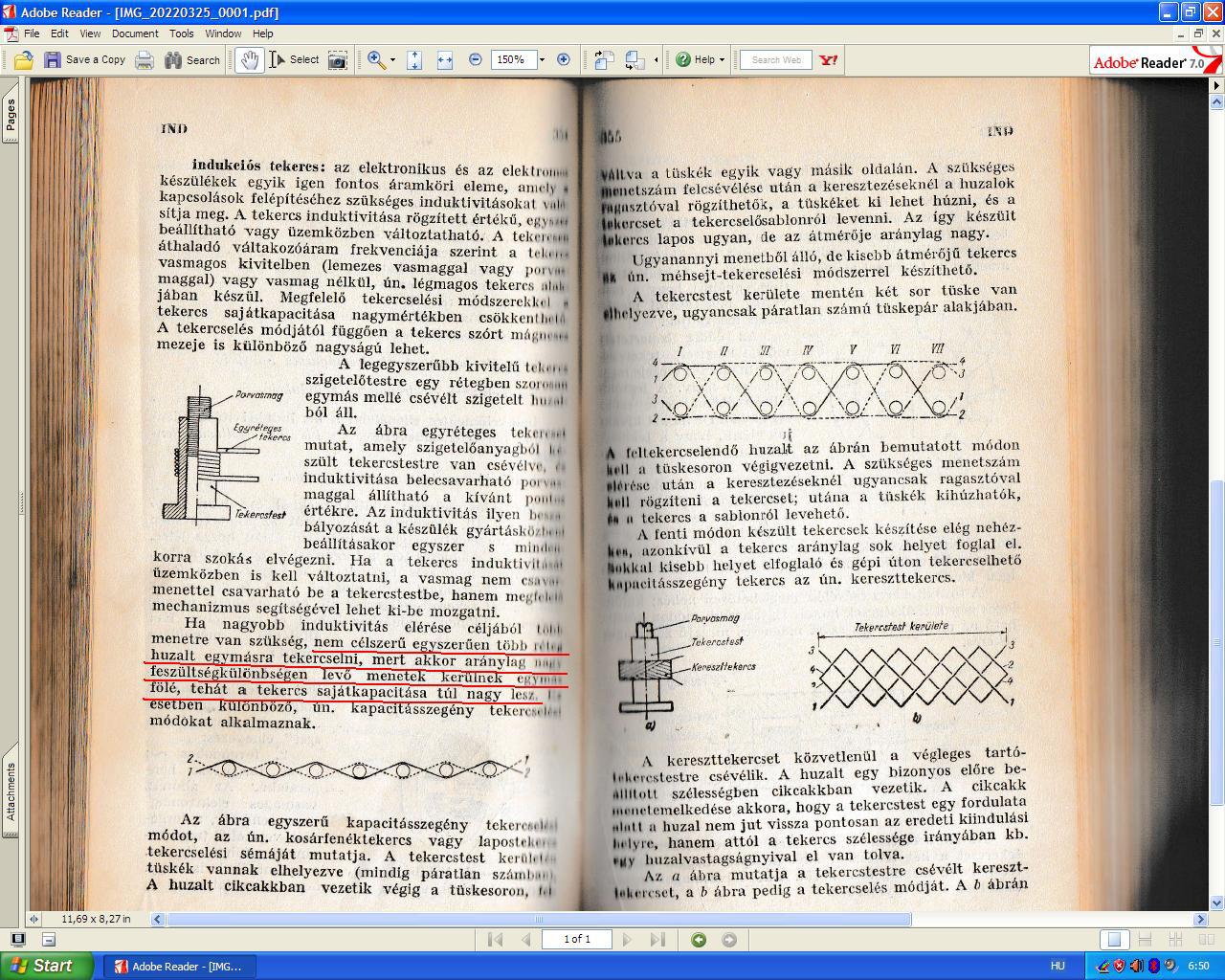 Ezt írtam: Idézet: „Minél kisebb a menetek közötti feszültségkülönbség, annál kisebb lesz a tekercs önkapacitása. Arra kellene törekedni, hogy legalább a tekercs kezdete és vége a lehető legtávolabb legyen egymástól.” A könyvben aláhúztam pirossal ugyanezt a mondatot. Szerintem további vitatkozás helyett inkább a fentebb említett hiányosságaidat pótold! Idézet: „Minél kisebb a menetek közötti feszültségkülönbség, annál kisebb lesz a tekercs önkapacitása” Ha te ezt a mondatot másképpen értelmezed, mint ahogy leírtad, arról csakis te tehetsz! Ez így leírva nemes egyszerűséggel blődség! A könyvben pontosan ugyanilyen pongyolán fogalmazott a szerző, akár ki is volt az elkövetője! Ha nem érted, segítek: attól, hogy más feszültségre töltesz fel egy kondenzátort, a kapacitása még ugyanaz marad! A nagy arc megint előbújt belőled. Érdekes, hogy vannak emberek, akik alig értenek bármihez is, de szent meggyőződésük, hogy osztani kell az észt olyan témákban is, amihez szemlátomást nem hogy nem értenek, de még értelmezési gondjaik is vannak! Idézet: Ez a két mondat egymást üti. „„Minél kisebb a menetek közötti feszültségkülönbség, annál kisebb lesz a tekercs önkapacitása. Arra kellene törekedni, hogy legalább a tekercs kezdete és vége a lehető legtávolabb legyen egymástól.”” A kapacitás nem függ a feszültségtől, hanem a tárolt kapacitív "energia". A fizikai távolságoktól függ a kapacitás, mint második mondatodban írtad. Egy rezgőkör rezonancia frekvenciája nem függ a feszültségtől, ergo a kapacitása sem a tekercsnek.