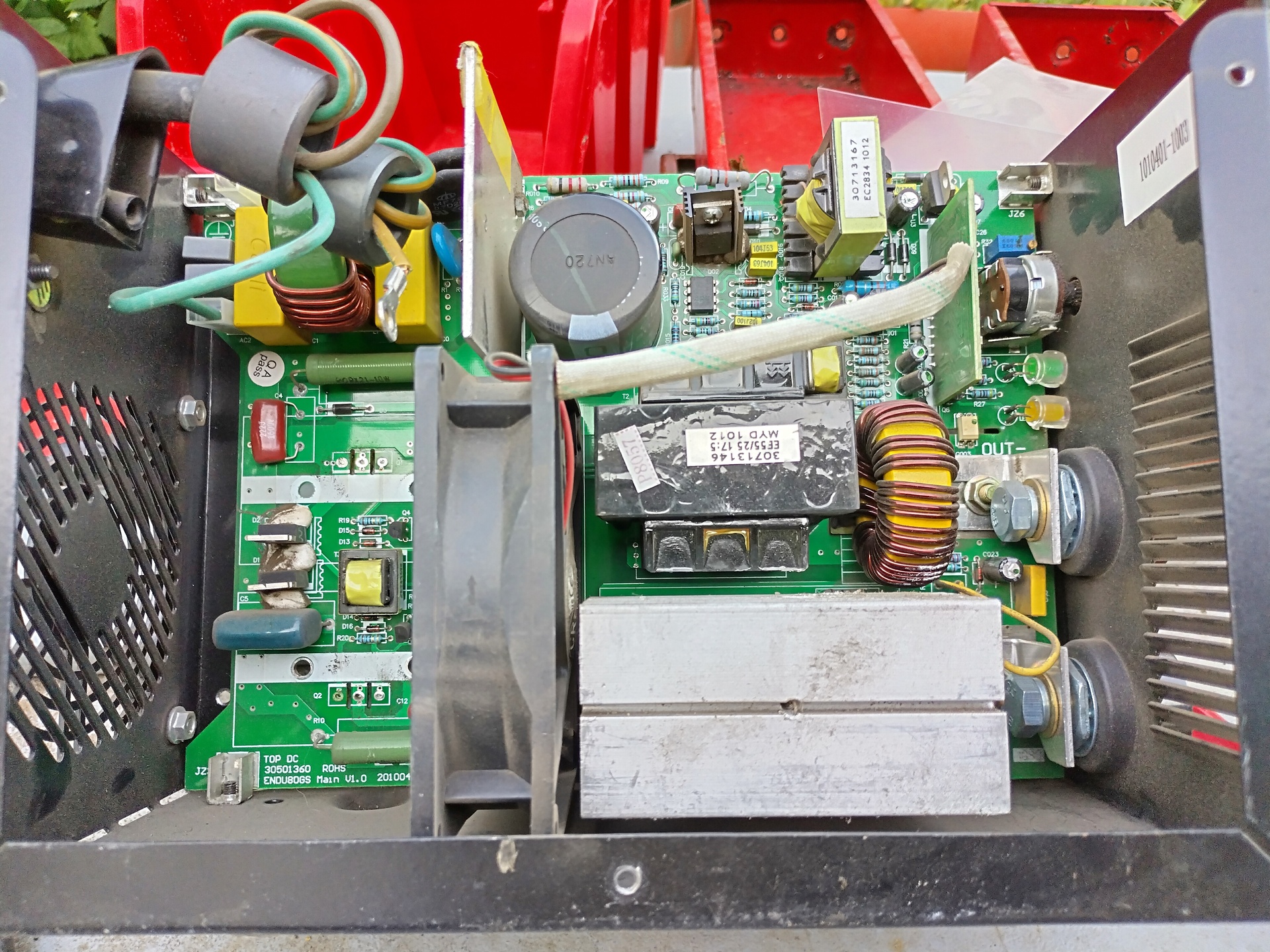 Güde 100 PMÜdv mindenkinek! Güde GC 100 PM inverteres hegesztő kapcsolási rajzot keresek. Mindkét igb zárlatos.Inverter beazonosításSziasztok! A fotókon látható inverter beazonosításában kérnék segítséget, hátha felismeri valaki a panelt, vagy egyáltalán mihez hasonlít. A MÉH telepről kukáztam ebben az állapotban. Az elejét a kezelőszervekkel és a burkolatot már "megmentették", vagy ki sem dobták. Próbálták "javítani" is, mert valamilyen megfontolásból a segédtáp vég FET helyére valaki rakott egy BD241-et és a hálózati diódahíd el volt tűnve belőle. A panel is szét volt gányolva a segédtáp részén. Kapott egy új UC3845-öt foglalattal, FET-et, egy 18V-os zénert, 2 ellenállást és a panel is restaurálva lett nagyjából. A cucc beindult, dolgozik szépen, a feszültséget leadja, viszont nem tudom a szabályzó poti hova volt kötve ill. a ledek. Több a csatlakozó is, mint ami feltételezhető. A "display" felirat rá van pingálva a panelre, de az annyira nem érdekel. A vezérlés egy UC3846D-ből és talán TL084-ből áll(ez utóbbit nem tudom leolvasni). Ha valaki segítene beazonosítani, esetleg egy rajzrészlettel kisegíteni amin hasonló a vezérlés és a potméter is rajta van, azt nagyon megköszönném. Üdv