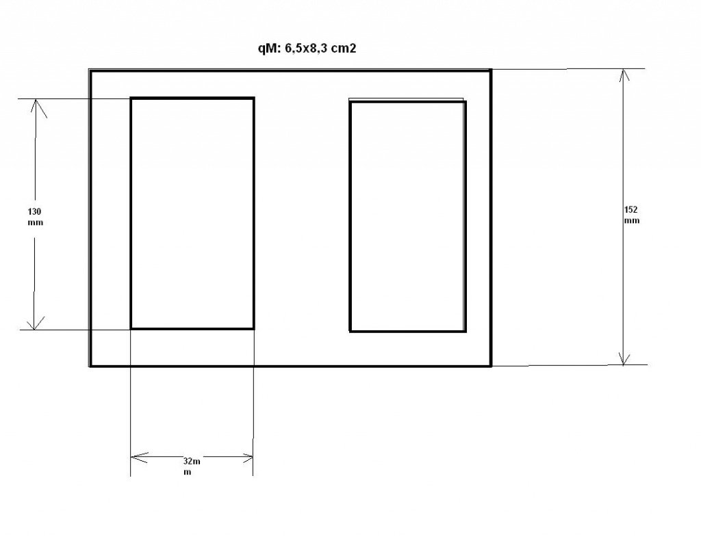 A korábbi rákérdezésed kíváncsivá tett. 65 mm oszlopszélesség mellett a vasmag többi része 22 mm széles, azaz 2*22=44 mm. Ez ~2/3 vasmagkeresztmetszet, azaz az oszlop belsejét kivéve a vasmag többi része durván túl lesz gerjesztve. Emiatt én is inkább a Ge-Lee által javasolt bemérési módszert tanácsolnám (ha esetleg nem hoz ki más méreteket az ellenőrző mérés