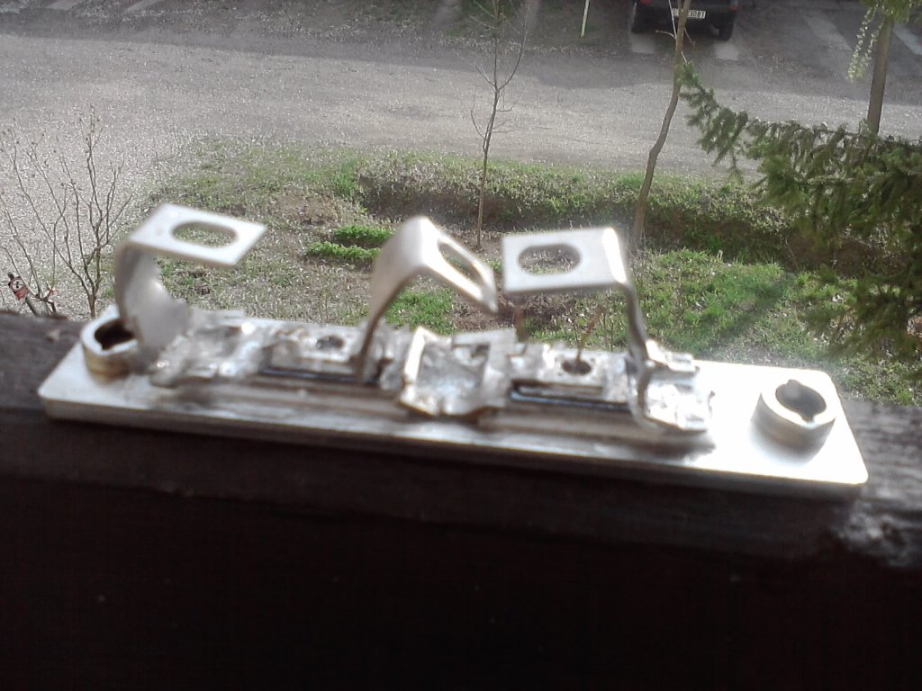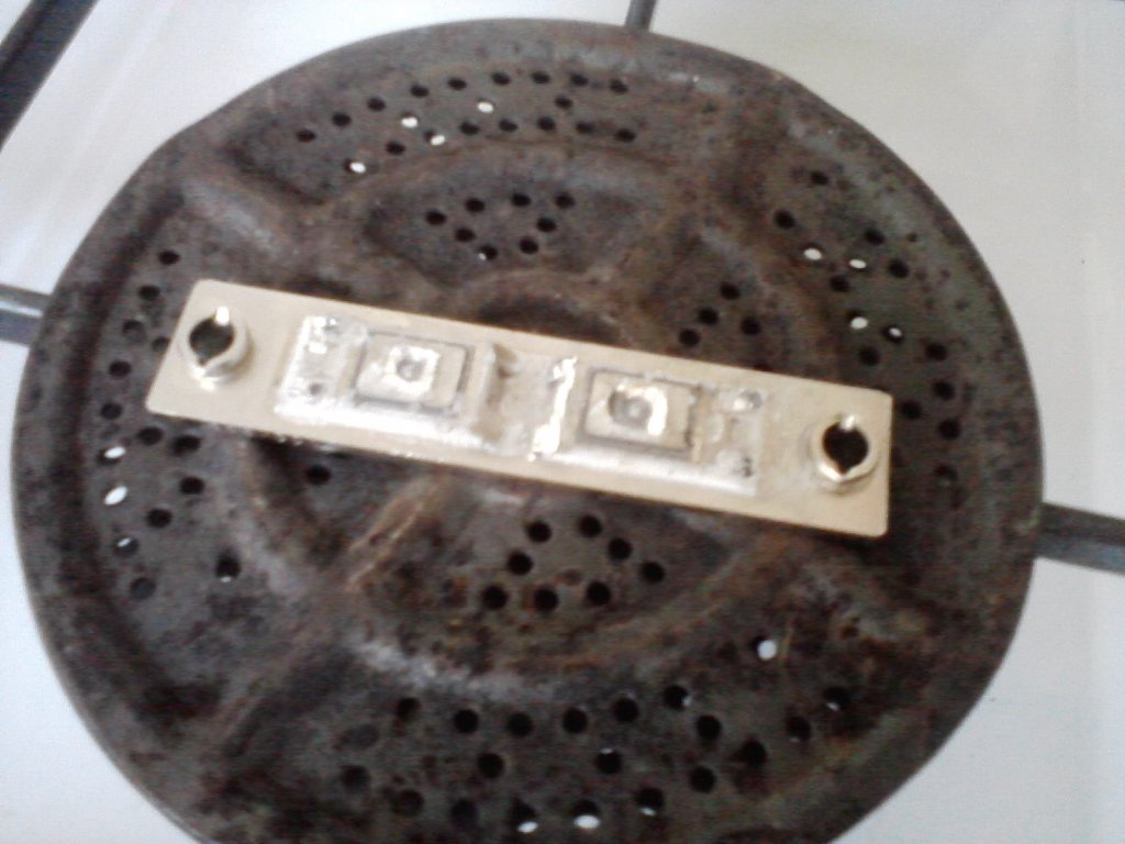 Elment az este... Egész végig egy teljesítmény tirisztor modulon dolgoztam. Ugyan az a típus, amit említettem kicsivel ezelőtt. Sajnos elég rossz állapotba mentettem meg ezt az egyet a két ép mellől, de úgy néz ki felélesztettem. Kis égővel tesztelve jól működik mostmár. Szerintetek merjem majd beépíteni? Mert hogy vagy 1 órát biztos eltöltött 2-300 fokon, mert 2-szer rosszul forrasztottam össze, aztán utolsónak kb 6. próbálkozásra sikerült betennem a helyére a gate elektródát, káromkodtam is rendesen, bár ezt azért még a szilíciumnak bírnia kellene. A képek mindent elmondanak.