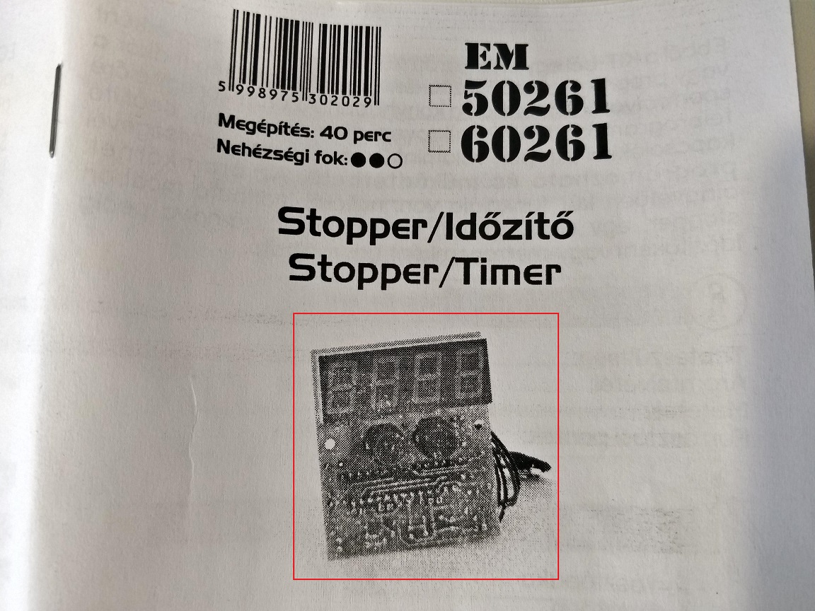 Szeretném jelezni, hogy a EM-50261 (HEKIT-261) Időzítő / Stopper terméknél a fotó rossz! A kijelző és a nyomógomb a panel hátuljára kell beforrasztani. A gyártói honlapon jól van megadva a két kép. Forrasztási oldal, beültetési oldal. Sose emlékezetből ........