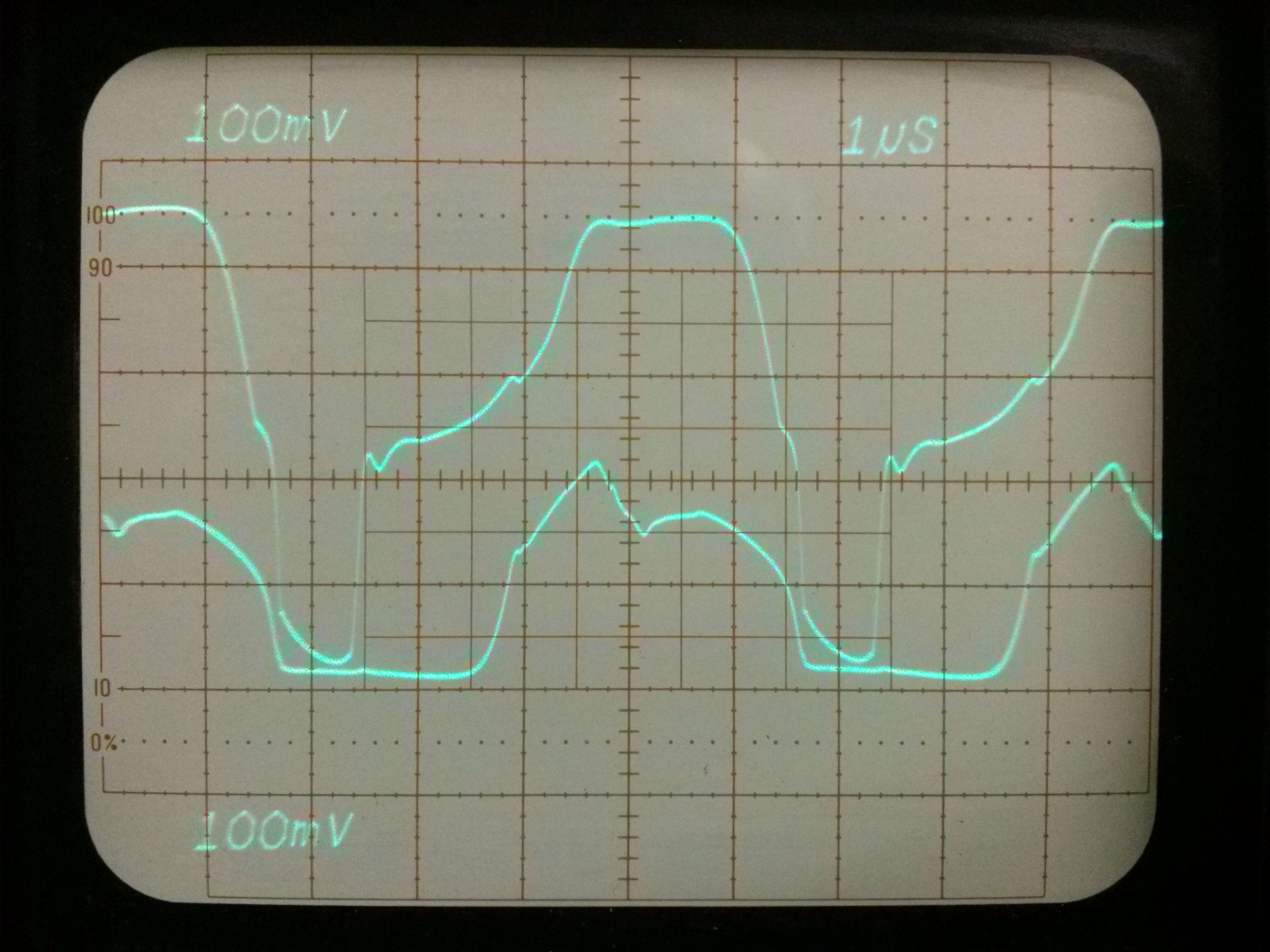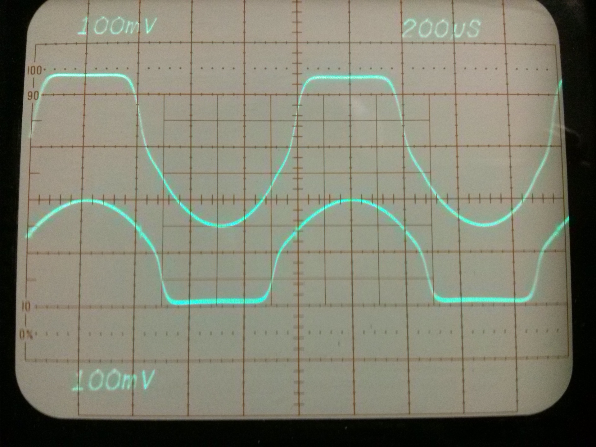 Az egyik fele a pozitív félhullámot erősíti, a másik fele a negatívot. Az alapötlet az volt, hogy az alsó fetek kapcsolóüzemben működjenek, de a gyakorlatban kicsit meg kellett emelni a BIAS feszültséget 0V helyett 3-4 V-ra. Nagyon vicces jelalakok voltak a félhidak kimenetein, de valahogy összerakta a kimeneti jelet.