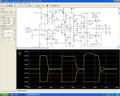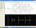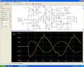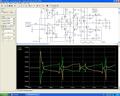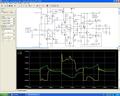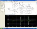 Az időlépést és a maximális időlépést is 1nsec-re állítva a kimeneti RC tag nélkül is eltűnt a szőr. Persze így sokkal lassabban fut le a szimuláció, de megéri. Szerintem már túl sok az alkatrész, aztán nem bír velük a proci.