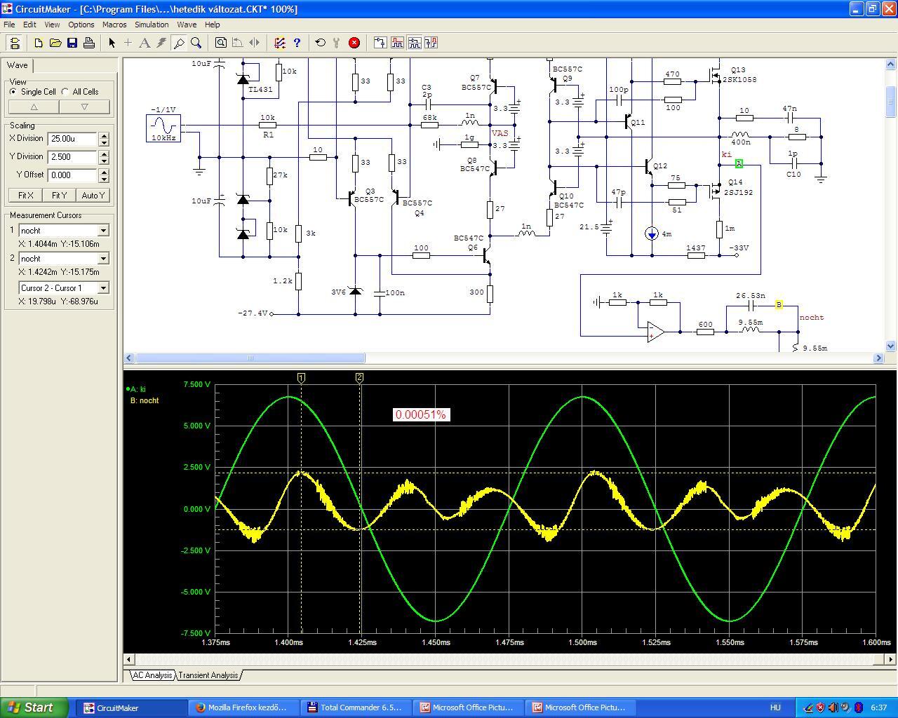 Ez a 0.00022% THD meg még csak -113 dB. Vannak ennél sokkal jobbak. De ezzel a hajtogatott kaszkóddal szerintem nem lehet már ezen a THD-n sokat javítani. Na... majd holnap folytatom, mára elég volt.
