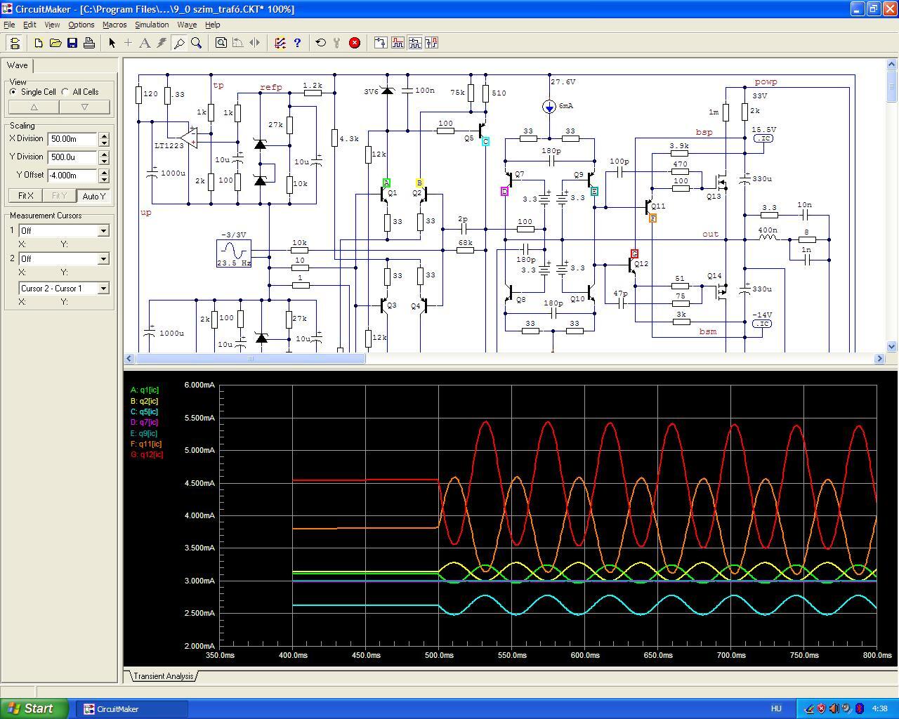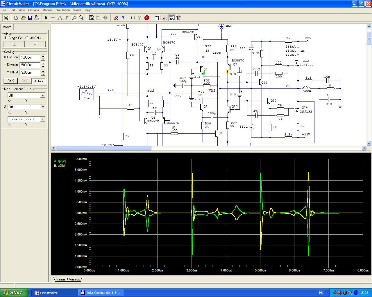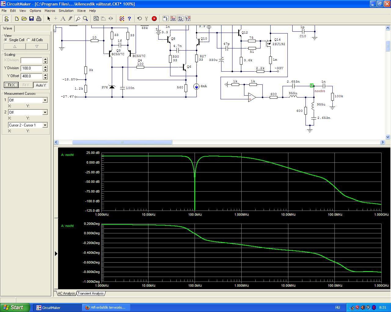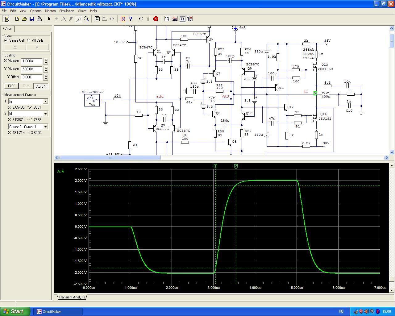 Igazad van ebben Q11,12-ben is. Miért ne lehetne más nyugalmi áramokat beállítani. Most, hogy felriadtam álmomból, azonnal beugrott, hogy rossz irányba rohamoztam idáig a buffer hurokerősítésével kapcsolatban. Tök egyszerű (ha rájön az ember). Így már be lehet lőni a fázistartalékot, de egyelőre nem látom át hogyan. Az is tény, hogy most már nem kell elhinni ha gerjedést mutat 1 kHz-en. Ki kell szűrni, vagy nem kell figyelembe venni. Nem tudja nagyobb "Step Time"-ban pontosan kiszámolni a meredek éleket.
