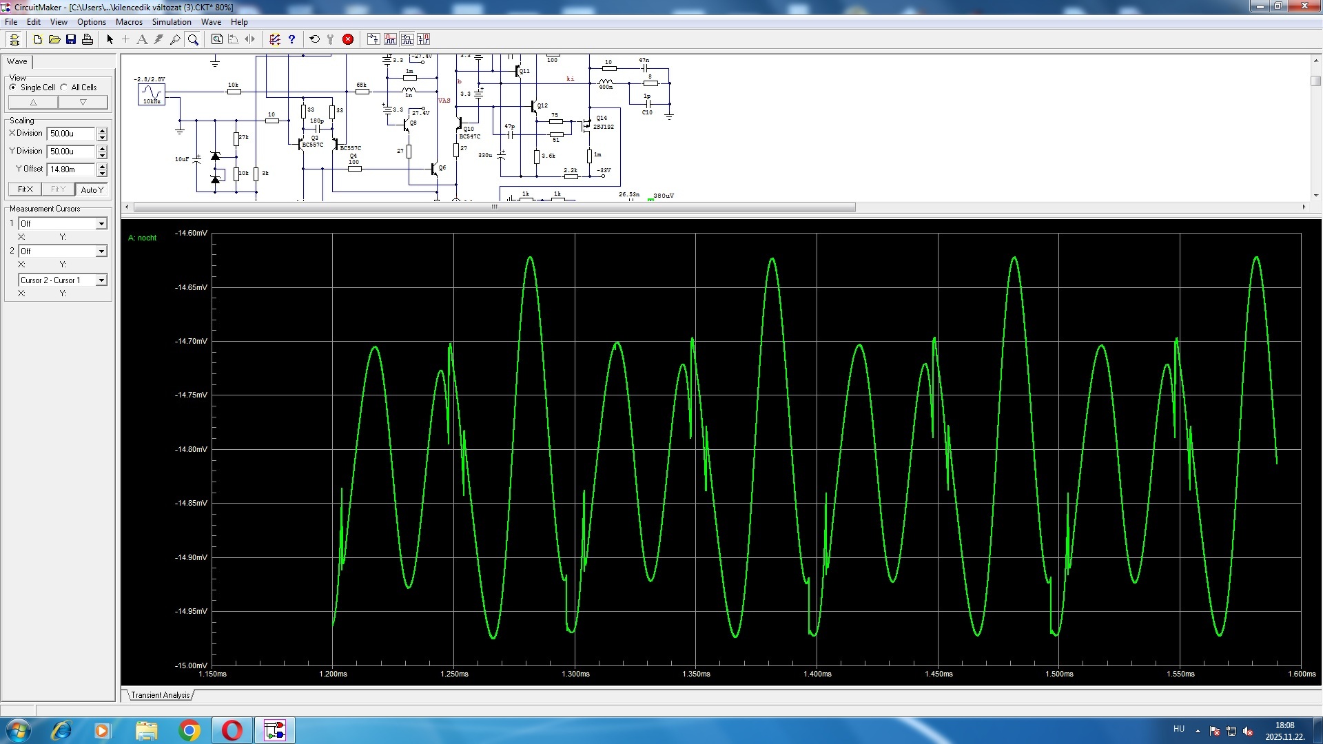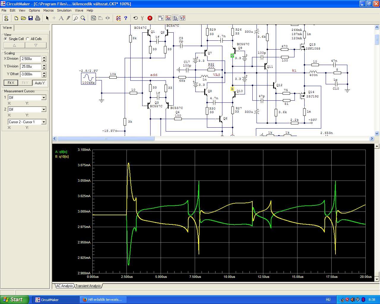 Én is kilépek, csak még felteszem a 80nsec, és a 10 nsec időlépéses szimuláció eredményét. Akartam még 1nsec időlépéssel is, csak lefagyott a CM200.