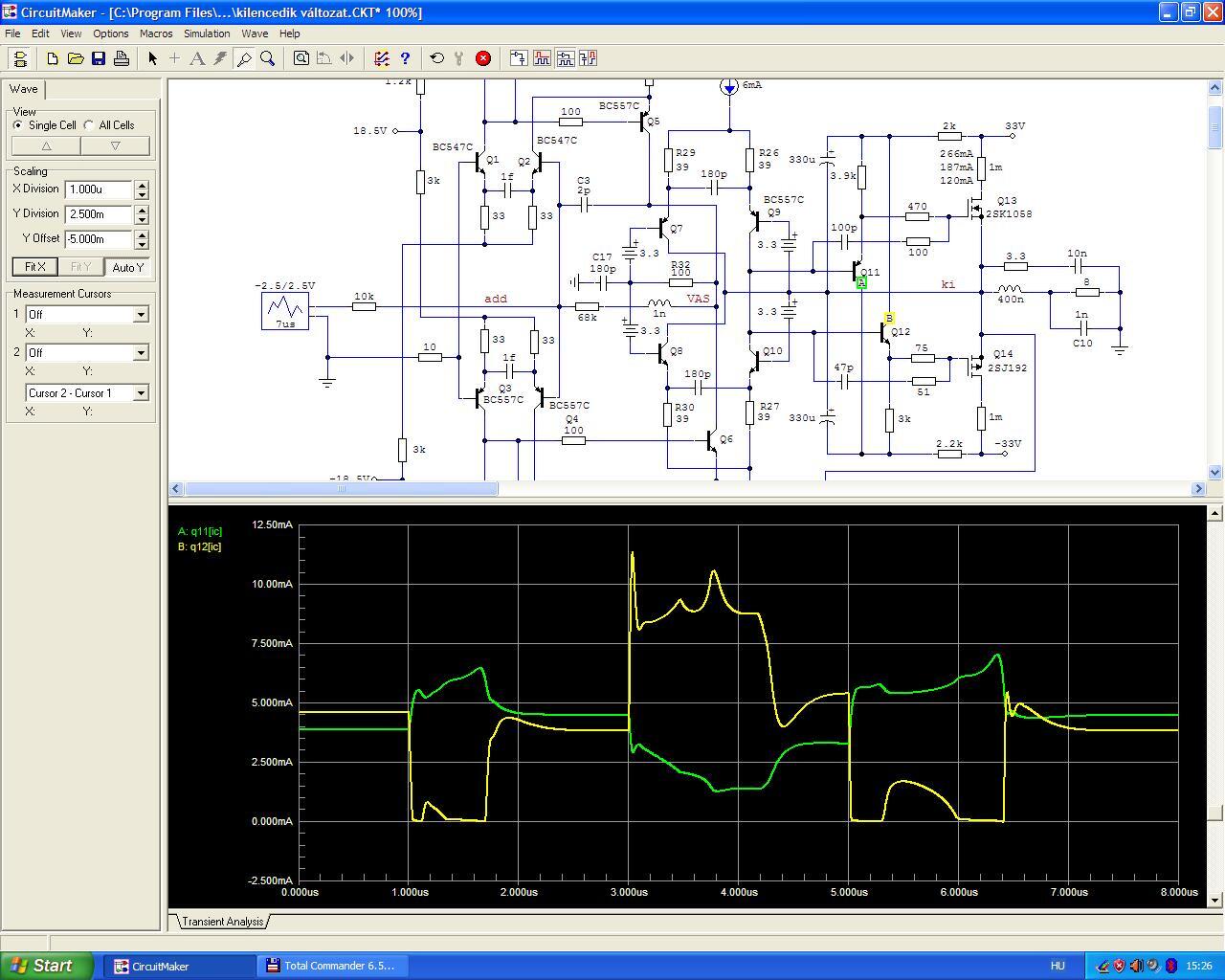 Az ember ösztönösen törekszik a szimmetriára, ezért nehezen fogadja el, ha valami nem szimmetrikus. Nos az jutott a fejembe, hogy a Q12 áramát nem kell a Q11 áramával azonosra választani, mert nem is egyforma terhelésre kell dolgozniuk. A Q11_Q12 IC JPG képen is látszik hogy nem azonosak. Ezen kattogtam még este, de hamar túltettem magam a gondolatom.