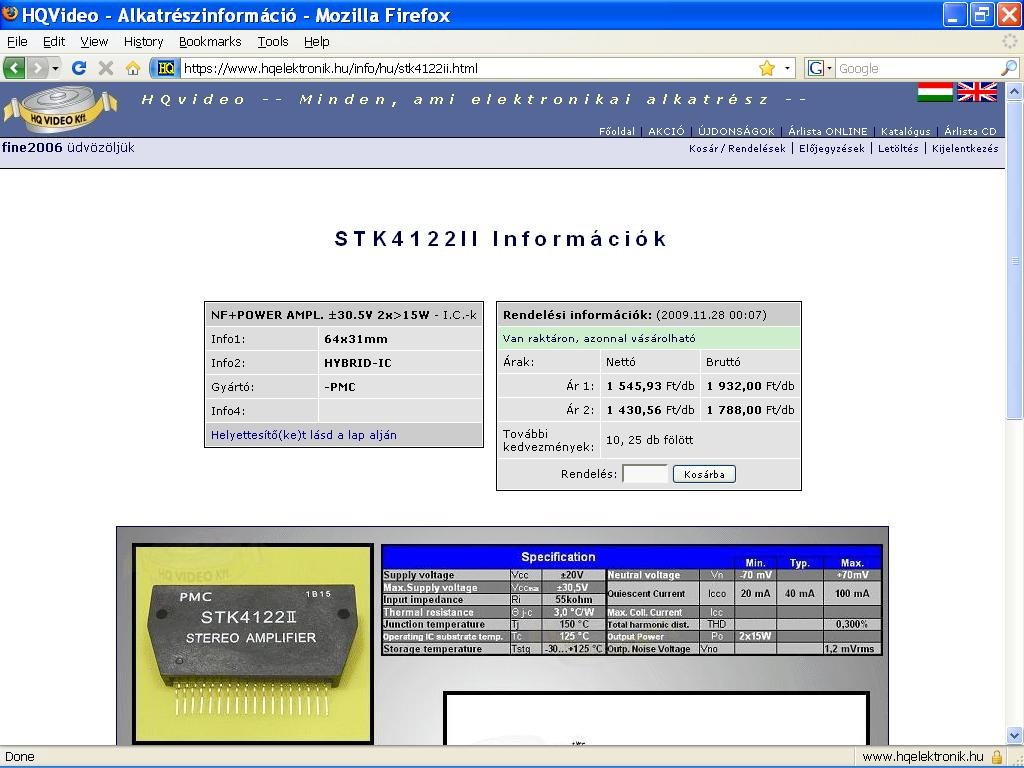 Az nemlessz könnyü beszereznie. És ami a másik, ha sikerül is szereznie, azon a panelon mindent nézzen át, mert nekem sikerült megcsinálnom az ic-t, hülye fejjel kiakartam probálni, és máshol illant el 1-2 belső kötés. Szóval ott diódákat, elkokat illik kimérni. Szerelő már nem is tudom honnan tudta volna rendelni, 35K- ért... Én hagynám, és menteném az stk-t amig lehet belőle valami építeni