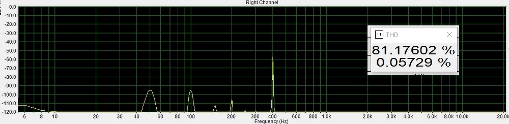 Igen, látni látom, csak épp nem hallom. Ha letekerem a hangerőt ilyen halk háttérzene szintre, akkor ez is tud 0,05% THD-t ahogy a mérésen is látszik. Biztos velem van a baj, de én itt sem hallom szebbnek vagy jobbnak ettől, mint azon a szinten ahol a THD már nem ennyi hanem mondjuk 0,8%. Mert ott is ugyanolyan gyönyörűen szól.