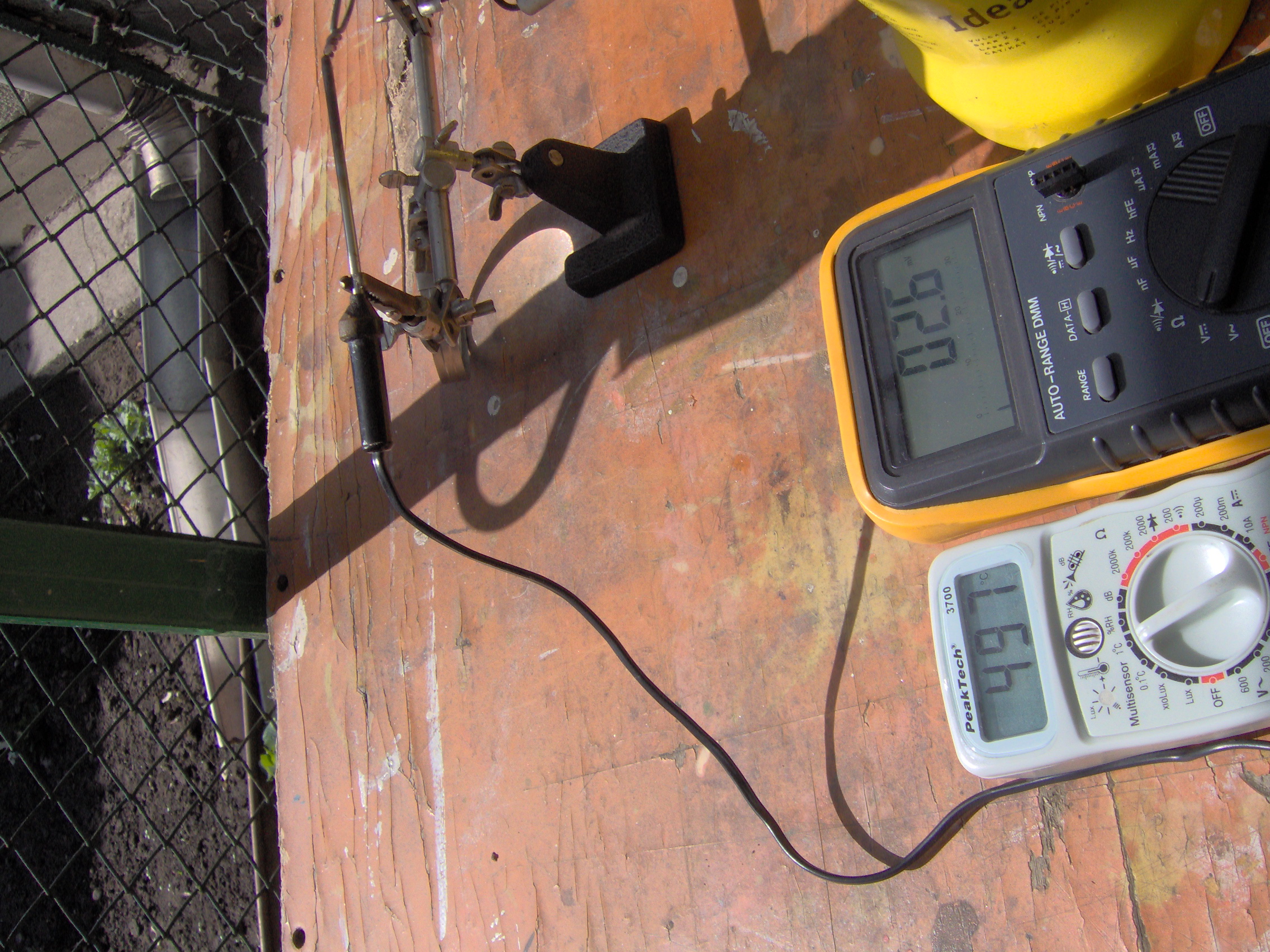 Kicsit pontosítanád azt, hogy felül vassal - alul rézzel forrasztva. Csak, hogy egyféleképp értelmezzük. Első olvasatra, ha jól értem, akkor a két Fe-Ni hőelem forró pontjait vassal, a két hőelemet egymáshoz (hidegpont) pedig rézzel forrasztva.