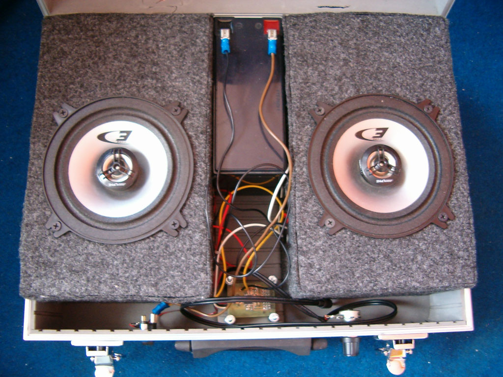 Mond hogy mi érdekel, én épitettem szoval tom mi van benne. Nagyábol leirom ha kell valami kérdezz. A hangszorokat külön külön bedobozoltam, de csak akkora dobozba hogy beleférjen a táskába. Hangszoronál nekem is nagyon fontos volt az érzékenység, sajna a dobozolás miatt csak 10cmes hangszorok fértek el. Az aksi 12V 7.2Ah zselés, UPSbe, riaszto szirénába szokot ilyen lenni. Ja és 2x25W os erősitő van benne. Mondjuk kéne neki 20Vos táp de 12ről már simán szol, kb 15W ot le is ad. Mondjuk van hozzá 3 db 6V 4Ah aksim is azzal már jobban szol, csak nem birja anyi ideig. Én nyaraláskor használtam, és föleg szabadban és meg vagyok vele elégedve teljesen.