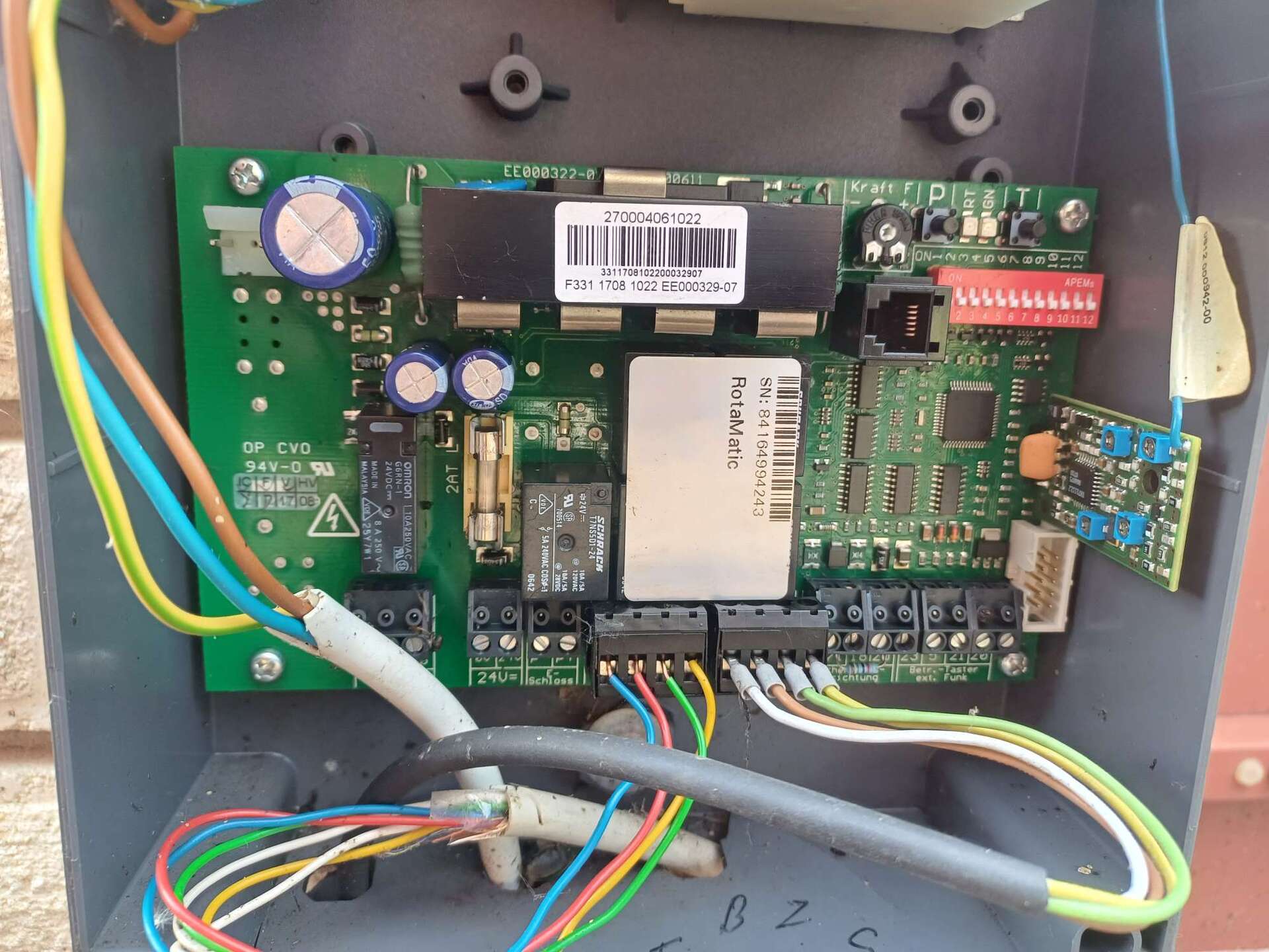 hát nem sikerült.... mérgemben vettem egy gyári EL301 infrát, azzal ment is 3 perc alatt minden, mindent is tudok állítgatni a DIL-ekkel, két kérdés maradt bennem 1) nem lehet azt elérni, hogy az automatikus kapunyitás ne csak teljesen kinyitott, hanem félig nyitott állásból is becsukja a kaput? ezt nem sikerült megugranom. Lehet ilyet 1általán? 2) mivel nekünk nincs kiskapunk csak a nagykapu az 1etlen bejutási pont, így ha történik valami az infra sorompóval (ami a kapun belül van) akkor nincs más csak a kapumászás. Na ha ebbe a feleségem belefut, akkor nekem annyi. Tervem: a 0 és 5V kimenetekre rárakok még egy vezeték párt, amire egy nyomógombos kapcsolót. A kapcsoló az utcáról elérhető lesz ha benyúl valaki a kerítéslécek közt. Így ha az infrával baj van, csak benyúl, gombot nyomva tart, távval kapu nyílik. Ez elméletben szépen működni fog. Kérdés: jobb ötlet ennél a problémára? köszi Rotamatic vezérlés egy idő után megmakacsolja magátSzervusztok!Olyan problémával szembesültem,amit még nem tapasztaltam. Az alany egy Hörmann Rotamatic kapuvezérlő,ami pár hét üzem után megáll. Gyári reset ués a hozzátartozó beállítások után megy,minden rendben lévőnek látszik. Amikor bekattan az agya,a nyitási parancsra,az mindegy,hogy távval vagy a megfelelő kontaktok rövidre zárásával,nem nyit, csak a piros LED villan kettőt. Ez a manuál szerint a biztonsági rendszer hibás működésére utal. Amiben az a fura,hogy ebben nincs infra beépítva,a két kapocs közé be van téve egy 8,2kOhmos ellenállás. Programozáskor azt a furcsaságot vettem észre,hogy az egyik szárny betanításakor a piros LED nem alszik el,mikor eléri a végálláskapcsolót a motor.A végálláskapcsoló működik,azt műszerrel ellenőriztem.A két motorban lévő panelt nem cseréltem fel még egymással. Tud valaki egy kis útmutatást adni,hogy hogyan is oldotta meg a Hörmann a 2 vezetéken a végállást és az impuzus számlálást is? Sejtésem van róla,az ezen az oldalon (elektrotanya.com) talált visszarajzolt panel alapján próbáltam kiokoskodni. A panelt elhoztam,letakarítottam,át is forrasztottam a szerintem kritikus helyeken,de sok mindent nem láttam rajta. Lassan vissza kell vinnem,jó lenne,ha nem volnék havi vendég az ügyfélnél. Köszönöm előre a segítségeteket! István Idézet: „Sejtésem van róla,az ezen az oldalon (elektrotanya.com) talált visszarajzolt panel alapján próbáltam kiokoskodni.” Én kicsivel a tanyás rajz keletkezése előtt szívtam pont ezzel, így variációk témára: https://github.com/martonmiklos/Hormann_EE000591_reveng_schematic Idézet: „ Tud valaki egy kis útmutatást adni,hogy hogyan is oldotta meg a Hörmann a 2 vezetéken a végállást és az impuzus számlálást is?” Áramot mér, a motor hall enkódere illetve e végállás kapcsoló különböző árammal terheli meg a főpanel bemenetét. Idézet: „át is forrasztottam a szerintem kritikus helyeken,de sok mindent nem láttam rajta.” Azt a pár elkót cseréld.
