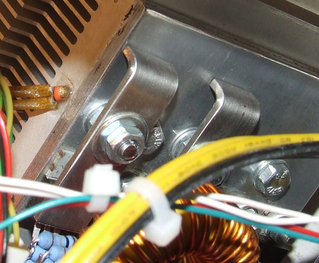 Az utóbbival nincs tapasztalatom, de a hőmérsékletfüggő fordulattal sokat kísérleteztem. Ezt =(NTC FAN6) a napokban üzemeltem be, és a mellékelt kép szerinti elrendezésben "hűtök" vele. Fontos, a ventilátor szállítási iránya ráfújja a levegőt bordára, nem pedig leszívja róla. Az a lényeg, hogy viszonylag gyorsan beáll az egyensúly, persze csak akkor, ha a termelt hő mennyisége és a hőtermelődés sebesség kisebb, mint a hűtőrendszer hőelvonó képessége. Azt javaslom, ne ragadj le konkrét hőmérsékletnél, mert túl sok tényező van ami befolyásolja a melegedés-hűlés egyensúlyát. Találj egy hőmérséklet mérő pontot, ragaszd oda az NTC-t, és utána az így kapott teljes rendszert hangold be. Ebben már minden körülmény benne van, az összes átmenet, minden hőterjedési sebesség, stb. Mióta van hőmérőm, azóta ezt úgy igyekszem csinálni, hogy elkezdem a rendszert melegíteni (ezt nálad a táp terhelését jelenti), és mikor a félvezető tokozása (hűtőzászló) hőmérséklete eléri az 55°C-t, akkor induljon be a ventilátor. Hogy ehhez milyen hőmérsékletű lesz a mérőszonda érzékelési pontjánál a borda, az attól függ milyenek a komplett hűtőrendszer adottságai. Ez a beindulás még csak a leglassúbb forgást jelenti, tehát szinte teljesen zajtalan a rendszer. Ez a hőfok alacsonynak tűnhet, de ez nem a maximum, mert ezután még jelentősen melegedni fog a kényszerhűtés elején. Ez azért van, mert a ventilátor nem fogja az indulása pillanatában varázsütésre lehűteni a bordát, csupán csak elindul egy kényszerített légáramlás, ami gyorsítja a borda hőelvonását, de akár még sok perc is eltelhet, mire ezt a tranzisztor észre fogja venni. Azért a helyzet nem olyan drámai, mert ahogy melegszik a borda, úgy nő a ventilátor fordulata, ami egyre fokozza a hőelvonó hatást. Tulajdonképpen ez egy játék az idővel. A mérőelem helyzete sem olyan nagyon egyértelmű, mint azt sokan gondolják, és itt is ajánlják neked. Lehet azt nagyon közel tenni a félvezetőhöz, sőt akár közvetlen a tokjára is lehet ragasztani, amivel elérjük hogy a ventilátor fordulata jól fogja követni a félvezető hőmérsékletét. Csak azt is kapjuk ráadásul, hogy még akkor is forogni fog szegény, mikor már a környezet hőmérsékletére hűl a borda (ez alá már nem tudja hűteni, ez az ő maximuma), mert a félvezető mondjuk még mindig 60°C. Ha a "hőforrástól" messzebb teszed az érzékelőt, akkor át lehet esni a ló túloldalára, mert a borda még csak 30°C, de a félvezető már olvadozik. Valahol a kettő között van az ideális megoldás. Illetve van egy szabály, amit javaslok betartani, mégpedig, hogy a közvetlen légáramba tilos az NTC-t tenni, mert az teljesen meghamisítja a szabályozást. Az előbbi példánál maradna, nálam ez a mérési pont vált be. A burkolatokkal legyél óvatos. Egy ügyesen eltalált "csőben", egyértelműen irányítani lehet az áramlást, de hogy ez jó vagy rossz azt mérlegelni kell. Vannak esetek, amikor nincs mese, muszály az erősítő elején beszívni, hátul meg kifújni a levegőt, mert nincs más lehetőség, de ennek ára van. az ilyen hűtési rendszerek zaja riasztó. Az áramló levegő minden akadályon megtörik, és e miatt "súgás" keletkezik. Valójában, ha egy bordára ráfújod a levegőt, akkor szinte mindegy milyen irányban távozik onnan, csak valahová el tudjon menni. Akkor van egy kis izgalom, ha a ráfújt levegő a korábban leszívott melegből táplálkozik, mert az rontja a hűtőhatást. Tehát a légterelgetés nem butaság, de mint mindent, ezt is érdemes bölcsen használni. Végül még egy fontos tudnivaló a fordulatszám szabályozott hűtéssekkel kapcsolatban. Ezeket szinte kizárólag a ventilátorra jutó feszültség nagyságának változtatásával oldják meg. És bizony a feszültségváltozás az nem váltható át egyértelműen sem fordulatra, sem szállított levegőmennyiségre, sem légáramlási sebességre. A ventilátorok eltérő sebességgel forognak adott feszültség esetén. Minden rendszernek saját jellemzői vannak, ezért egyedileg kell azokat beállítani. A hozzászólás módosítva: Jan 1, 2014