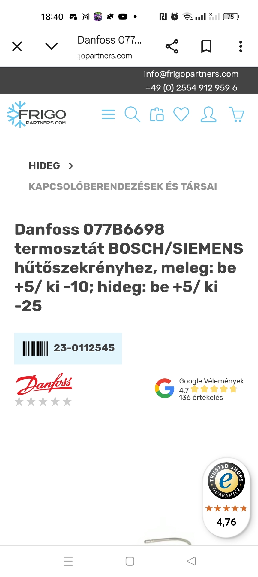 ARC5450 túlhűt, nem kapcsol leSziasztok, van egy ARC5450 alulfagyasztós hűtőnk, amire azt gondoltam logika alapján, hogy nem jól méri a hőmérsékletet. Fagyasztóban -22 fok, fent viszont elérte a 0 közeli hőfokot és még sem kapcsolt le. A termosztátot máshová tekerve, azaz lejjebb, akkor kikapcsol, de ha ott hagyom, akkor kapcsolgat ugyan, de 8-12 fok lesz a hűtő részben. Gondoltam termosztát csere, de most így olvasgattam amit írtatok, nyilván nem oldott meg semmit, mert pont ugyan azt csinálja csere után is. Ha jól értelmeztem, akkor a hűtőrész párologtatónak csak a felső fele hűthet (amire rá is fagy a pára ha megy a kompresszor, de nem tudom mekkora részen kellene hűtsön), így a termostat nem hül le sose amennyire kellene. Ilyenkor hűtőközeg hiányos, 23 éves hűtőnél már csere inkább. Jól foglaltam össze?Köszönöm a segítséget! Siemens hűtőhöz termosztátSziasztok! Siemens hűtőhöz keresek termosztátot megfizethető áron a gyári patika drága ami benne van 077B6698. Képet mellékelek, hogy miről van szó