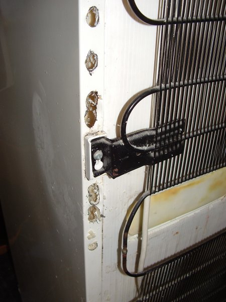 Ha a külső jegesedésből adódóan tudod lokalizálni, hogy kb. hol lehet "meg szakadva" a hő szigetelés, akkor ott egy lukat fúrva a borító lemezbe, egy kis purhabot bele fújva a lukba, javítható. Vigyázz, mert a purhab térhálósodás (kötés) közben a térfogatát akár többszörösére növeli, (nem kis erőt ki fejtve) és akár a burkolat ki is púposodhat. Szóval nem bele fújni amennyi belefér, csak érzéssel. Az még jobb, ha a jegesedés "centruma" környékén, több (3-4) lukat fúrsz, hogy a táguló hab, ki tudjon jönni. Ha nem ismered a pur habot, VIGYÁZZ MERT AZ EGYIK LEGJOBB RAGASZTÓ (amellett, hogy jó hőszigetelő is)Elég levakarni, ruhából csak az olló veszi ki, úgy hogy előbb próbáld ki a viselkedését valamin. Nem árt a gép oldalán is, a furat(ok) környékét ragasztó szalag csíkokkal fedni, mely a kikeményedés után le húzható.