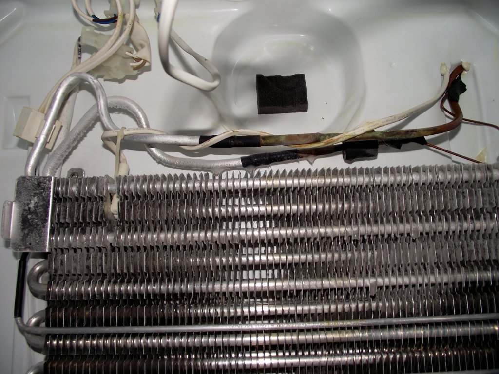 A készülékben a fagyasztó részben találtam 2 db hőmérséklet jeladót, egyet a hűtőtéren belül, egyet pedig a belső hátfal mögött található hűtőbordák között. Ezenkívül találtam a hűtőgáz csövön 2-t egy kis dobozba kiöntve és felcsatolva a csőre, ennek tudtam megnézni az ellenállását ami 0 Ohm (a csatolt képen bal oldalon).