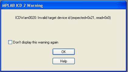 PIC-et nem tudta azonosítani, mert vagy nincs csatlakoztatva, vagy nem kap táplálást.