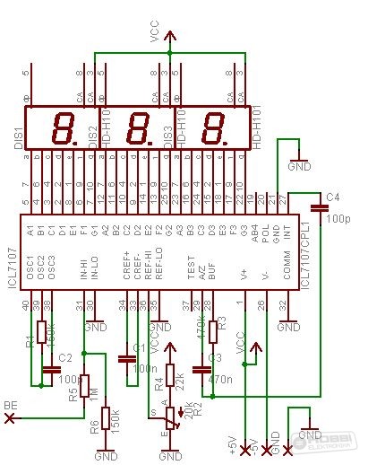 Ha jól tudom, akkor az icl7107 5V-os tápot kap.