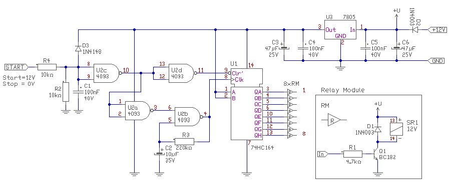 ha kap mégegy 12 voltot+ (dc) vezérelve akkor egyesével bekapcsolgatná a 8 db relét ugy hogy a