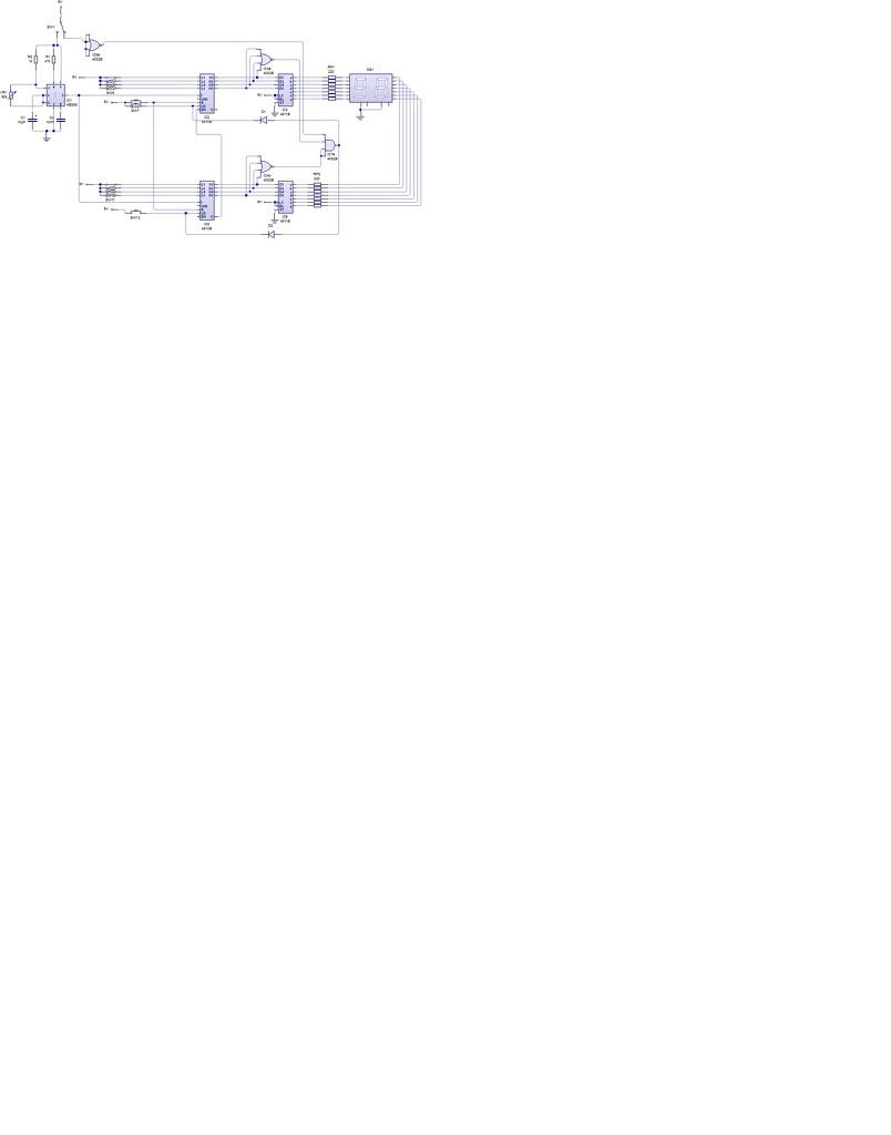 Egy apró problémában kérném a segítségeteket. Circuit wizard szimulátorban egy visszaszámlálós időzítőt építek ami 1 perces időzítésre alkalmas (amint az a mellékelt ábrán is látszik) 4510-es bcd számlálókkal, 7 szegmenses kijelzőkkel és egyéb finomságokkal. A működése egyszerű, az 555 melletti két állású kapcsolóval lehet indítani, a kapcsoló melletti NOR kapu megakadályozza, hogy 00-ról 59-re váltson, ha az oszcillátor nincs rákötve. A Load bemeneteken bcd kapcsolókkal 59-re van belőve az idő, illetve a három NOR és egy AND kapu segítségével 00-ról 59-re állítja vissza magát egy egy perces ciklus végén. A probléma az egésszel az, hogy a 00-t csupán egy töredék másodpercig mutatja és rögtön 59-re ugrik. Ez két szempontból gázos: 1) pontatlan az időzítő (nem teljes az egy perces időzítés a gyors váltás miatt) 2) ha az AND kapu kimenetét inverteren keresztül rá akarom kötni egy hasonló felépítésű perc számláló EN pinjére (tehát azt akarom, hogy a perc számláló csak a 00-nál váltson az óra jelre), akkor a rövid impulzus miatt az EN pin csak töredék másodpercig marad LOW és mire beérne az órajel, már ismét HIGH így nem reagál az órajelre. Kérdésem: Hogyan tudnám a 00 kijelzést egy másodpercesre nyújtani, majd utána 59-ről indítani a következő perc ciklusát? (Az ábra paintben igény szerint nagyítható ) A hozzászólás módosítva: Szept 3, 2014