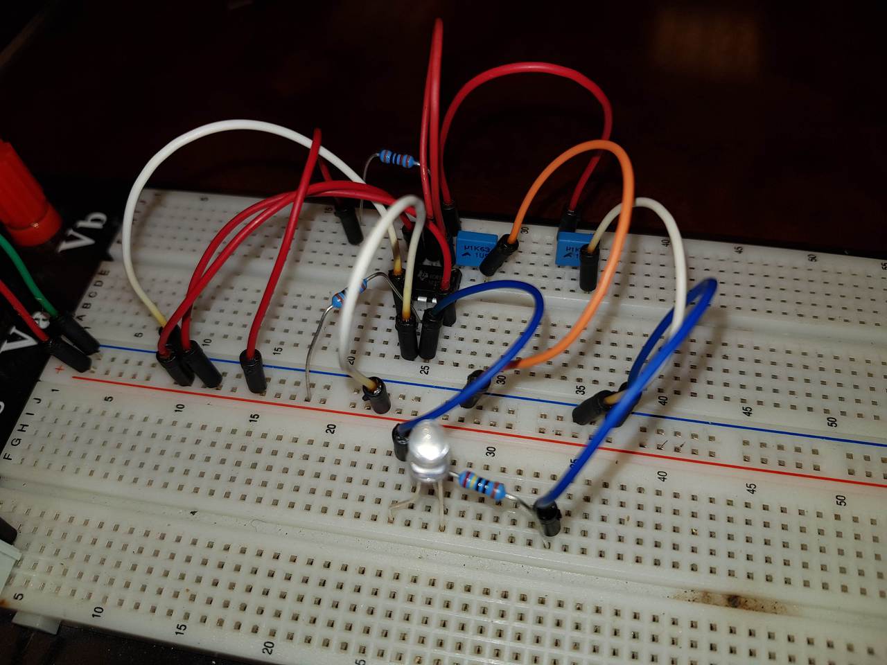 Próbáltam megépíteni az 555-ös IC-vel, azonban sajnos nem sikerült.