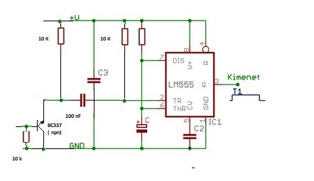 A jobb oldali 10k-s ellenállás magasan tartja a trigger jelet. Amíg a bemeneten alacsony jel van, addig a tranzisztoron nem folyik áram, tehát mintha ott se lenne a többi kiegészítés. Ha felfutó él van a bemeneten, akkor nyit a tranzisztor és a kondenzátort alacsony jelszintre hozza egészen addig, amíg fel nem tölt, akkor meg szakadás lesz és újra a jobb oldali ellenállás húzza fel a magas szintre. Jól értelmeztem a kapcsolást? Éppen raktáron BC182 van. gondolom az is jó erre a feladatra. A másik kérdésem az lenne, hogy ha már sikerült az egy másodperces jelet előállítani a kimeneten, akkor hogyan lehet ezzel két digitális jel között kapcsolni? gyanítom, hogy ide is egy BD337-es jó. De hogyan kell azt megcsinálni, hogy a két jelet kapcsolgassa? Nagyon köszönöm a segítséget. A hozzászólás módosítva: Feb 27, 2018