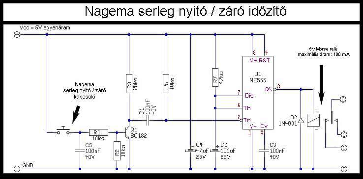 Az R1 ellenállást Vcc-re kötöttem úgy, hogy közbeiktattam egy nyomógombot. A relének nem kellett tranzisztor, mert csak 26 mA-t vesz fel 5V-on. Amikor a kapcsolót zárom (azaz Vcc kerül az R1 ellenállás bal oldalára), akkor elindul az időzítő, átkapcsol a relé. Ha rögtön el is engedem, akkor szépen letelik az 1 mp és utána visszakapcsol a relé. Ehhez képest ha nem engedem el a kapcsolót, akkor ugyanígy gond nélkül letelik az egy másodperc, azonban utána elkezd össze-vissza kapcsolgatni a relé. Elképzelhető a kapcsolón lévő pergés az oka? Ezen kívül még egy érdekes jelenség, hogy a nyomógomb nem minden megnyomásakor indul el az 1 mp-es időzítés, megbízhatatlan. Ehhez képest ha egy csipesszel rövidre zárom a nyomógomb csatlakozóit, akkor mindig elindul, de aztán 1 mp után jön a kapcsolgatás. Sajnos attól tartok, hogy eredetileg rosszul fogalmaztam meg a bemenő jelet. Tehát nem a felmenő élre kéne kéne indulnia az 1 mp-es időzítésnek, hanem egy kapcsoló kapcsolásakor. Tudnátok segíteni így átalakítani a BC182-es tranzisztoros kapcsolást? A hozzászólás módosítva: Feb 28, 2018