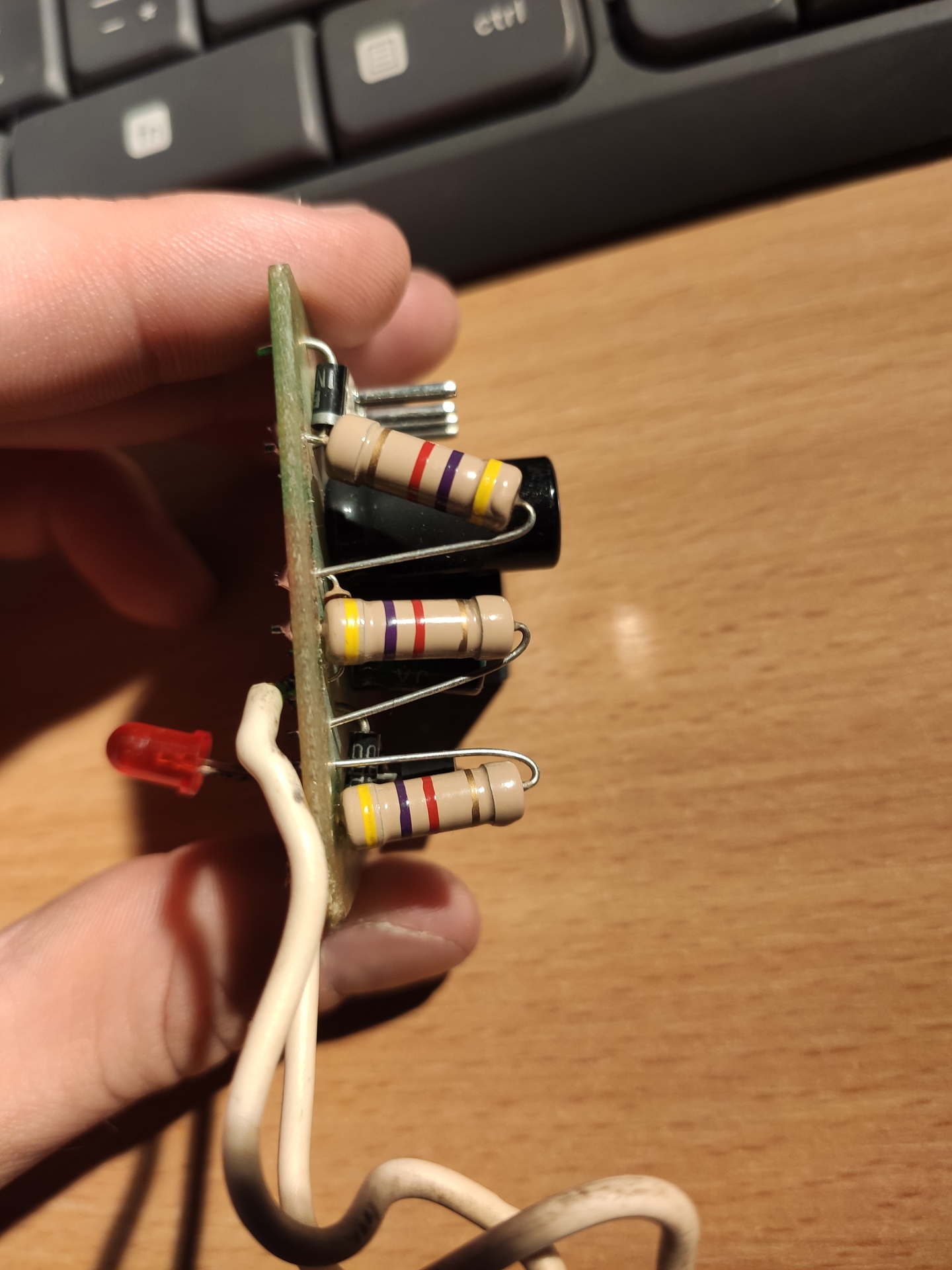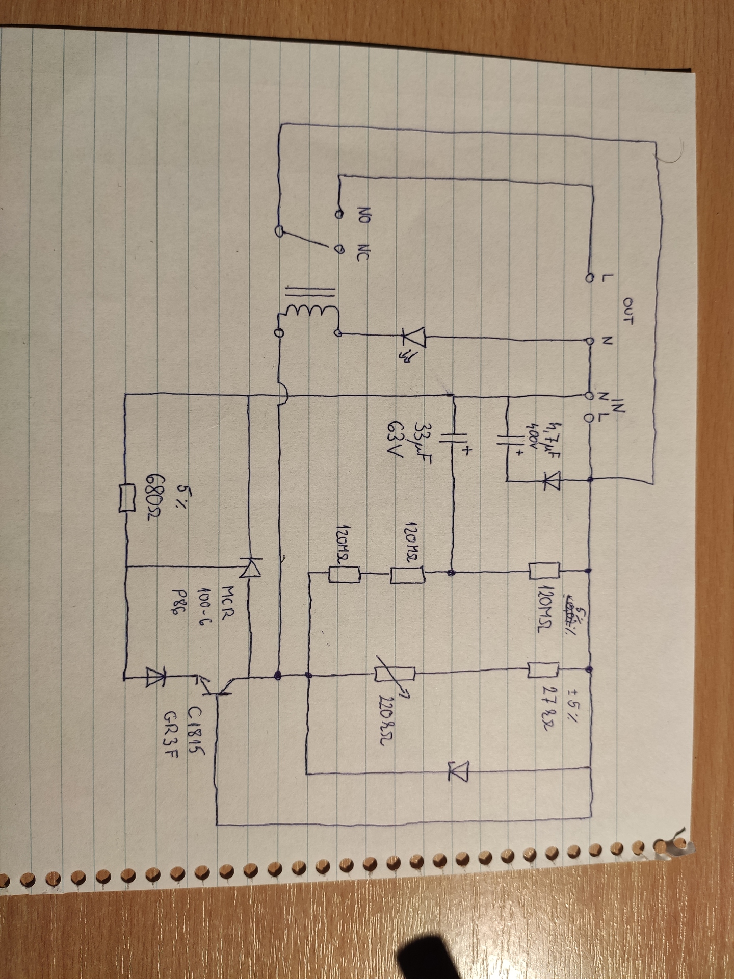 Hello! Legalább két fényképet tegyél fel, egyet alkatrész oldalról felülnézetből (ha lehet látszódjanak át a vezetősávok)m másikat pedig a forrasztási oldalról. Mert amit rajzoltál, messze nem így van. Mert pld. én a három nagy ellenállást a kép alapján 4.7kOhm-nak látom.