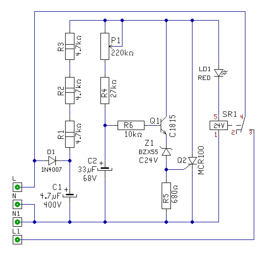 Mérjél feszt az N és a D1, D2 anódon, amikor ráadod a feszültséget az L pontra (időzítés lejárta előtt a műszer előre legyen rátéve). Utána újra szakítsd mega bejövő feszt és az N, valamint a C2-re mérjél rá. Itt az időzítési ciklús végére fel kell töltődnie a kondinak 24V-ra. Várom az adatokat. Üdv. M.
