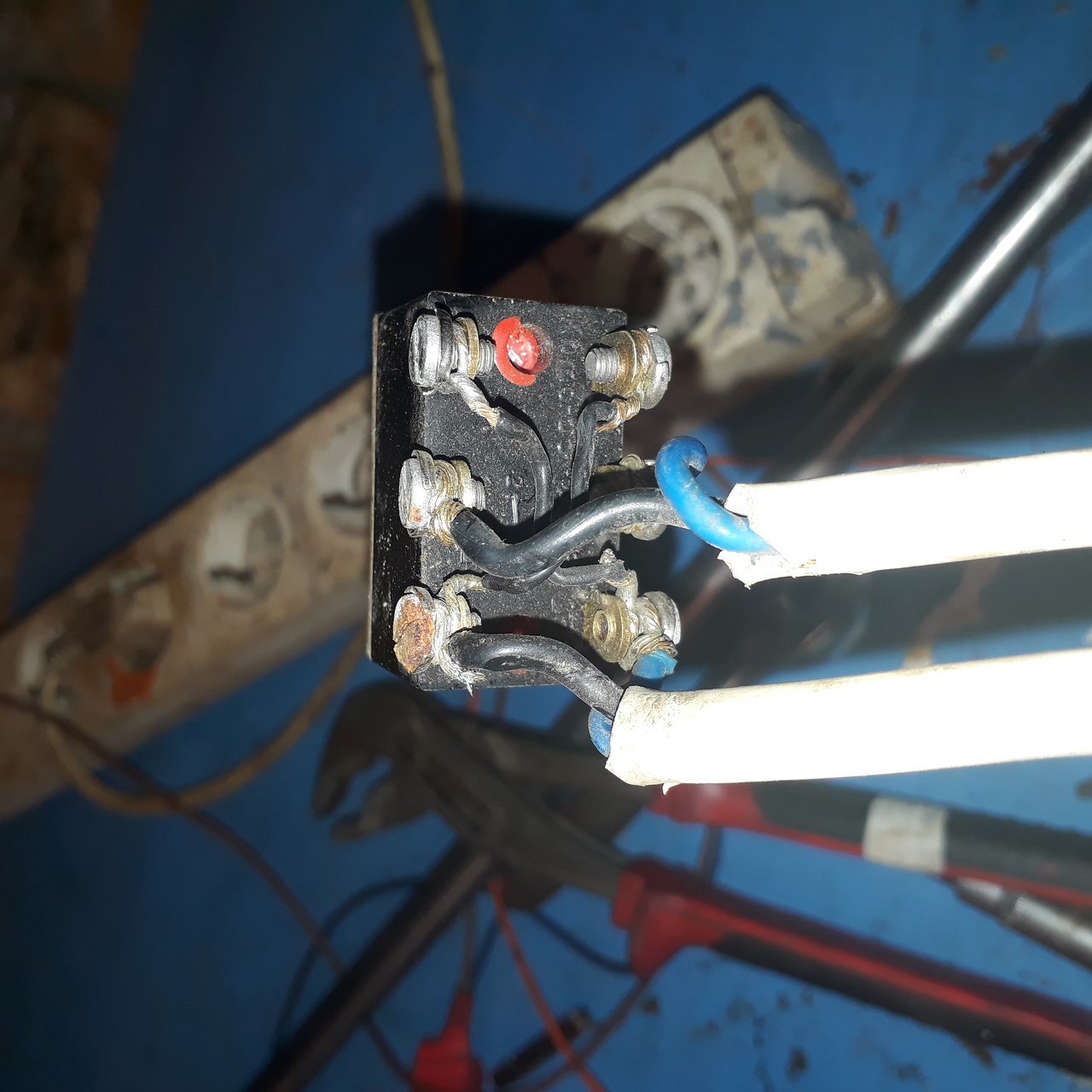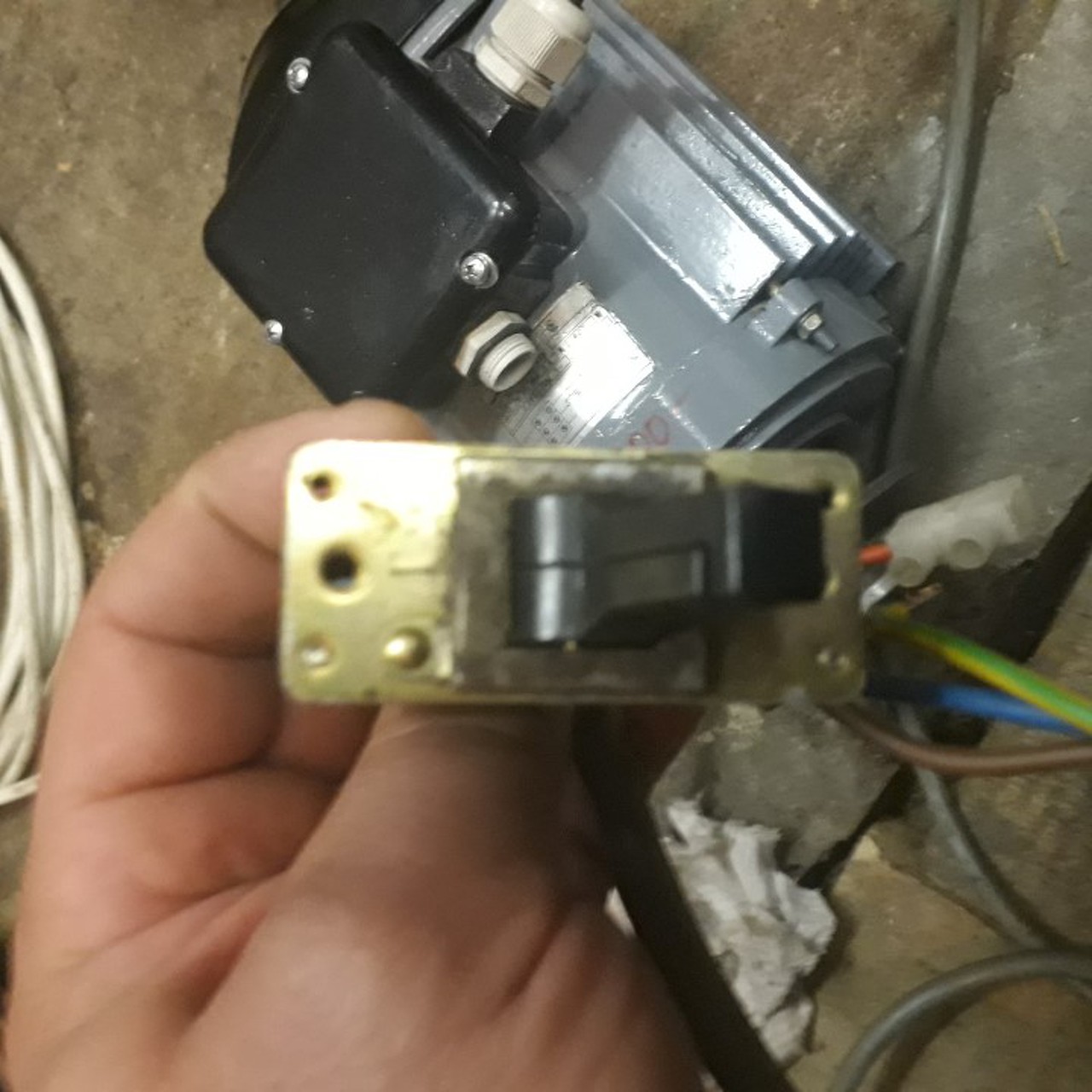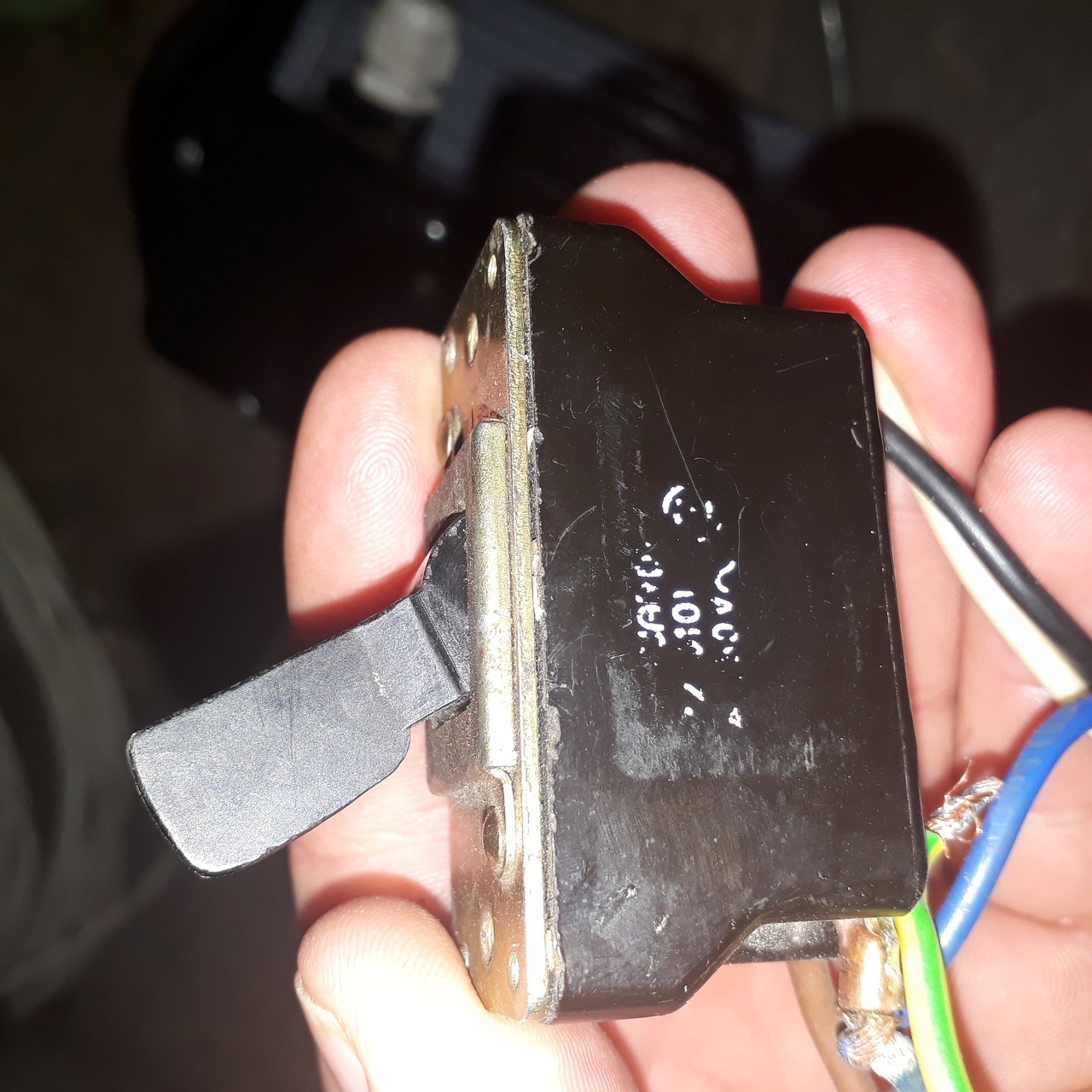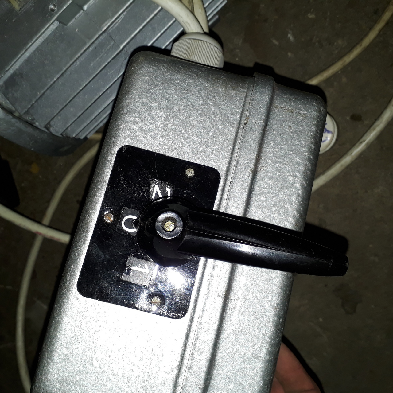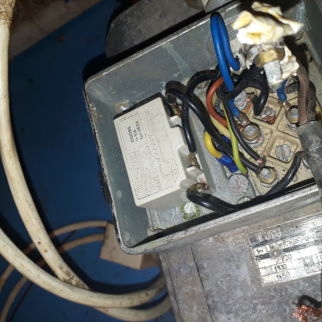Indítókondi levágva. Indító relé lába megégve, nem funkcionál, áthidalva el tudta indítani a bácsi, és be van kötve egy keresztkötéses irányváltó kapcsoló. Ezt kellene kulturált formában, jelenleg is megvásárolható összetevőkből újra építeni. Egyenlőre a relé nem beszerezhető, nyomógomb helyett lehetne 3 állású kapcsoló, ami 2. állásban ráadja a segédfázist, mint a nyomógomb, elengedve visszaugrik 1 állásba, 0 ban lekapcsol. És lenne egy teljesen külön irányváltó kapcsoló. A bácsi aki a motort kapja rendbe, csapágyak, kapocsléc, kondi, nem hiszem ,hogy rá tudná építeni a kapcsoló végére.