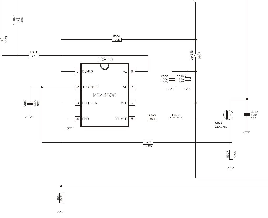 Hozzám került egy TV 11ak30a11-es sassszival szerelt. Viharban, áramkimaradás volt, aztán hírtelen túl erős áram jött meg és annyi volt neki. (tulaj elmondása szerint) Nos, szétkaptam, táp primer körében meg is volt a mérhető és látható probléma. Q801 totál zárlat, mellette R809 elrepedve. Van egy ugyanijen sasszim alkatrészbe meghagyva, a táprésze működik, abból pakoltam át az alkatrészeket. És elővigyázatosságból az IC800 is cserélve lett. 220-ba be, és a táp csipog. Gondoltam sorvégtranyó, de csere után a hiba úgyanúgy megmaradt. Továbbá, D800,C881, C858, C859, C810, IC801,C860,R834 cserélve. Hiba ugyanaz maradt. Kicsit csipogtatva hagytam, és észrevettem hogy a szekunder oldalon C827 (16V/4700uf) erősen melegszik. Rámérve 16v hejett, 24v körül mozgott a fesz. Most az van hogy éppen csak közel hajova hozzá hallani a csipogást, 24Vból 3V lett. Nemértem miért nem indúl a táp, sehol nemtalálok zárlatot a szekunder oldalon. Mi lehet a gond? Előre is köszönöm....