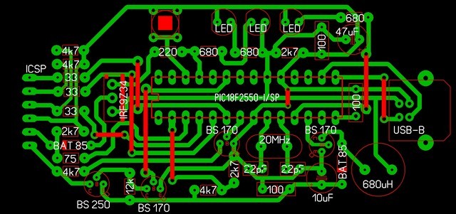 Hello! Átterveztem .PCB-ről .lay-re Watt PICkit2-jét. Az értékekhez rá kell vinni az egeret az alkatrészekre. Néhány (azt hiszem 3) kondenzátort nagyobb tokozásúra cseréltem, mert csak akkorában lehet kapni. Néhány diódának a típusa nem az, mint a .PCB-ben, mert azok nehezen beszerezhetőek.